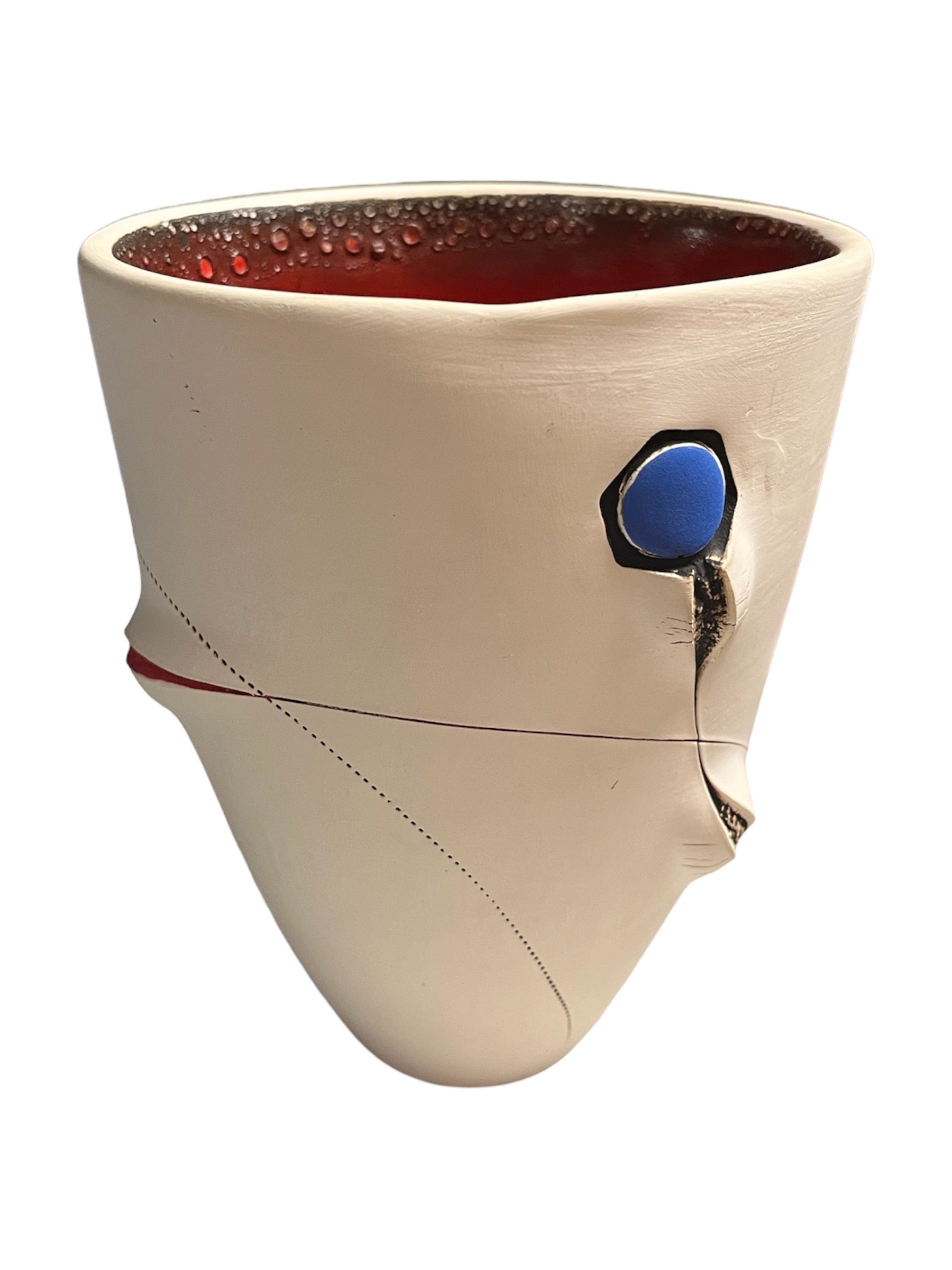 This stunning vase is handmade by famous South African artist Andile Dyalvane. Born in 1978 in the small village of Ngobozana, many of his works draw inspiration from his Xhosa heritage. This particular vase represents the scarification rituals practiced by the Xhosa people. Treating clay like skin, Dyalvane marks the surfaces of this collection with delicate patterns, celebrating the beauty of this youth.