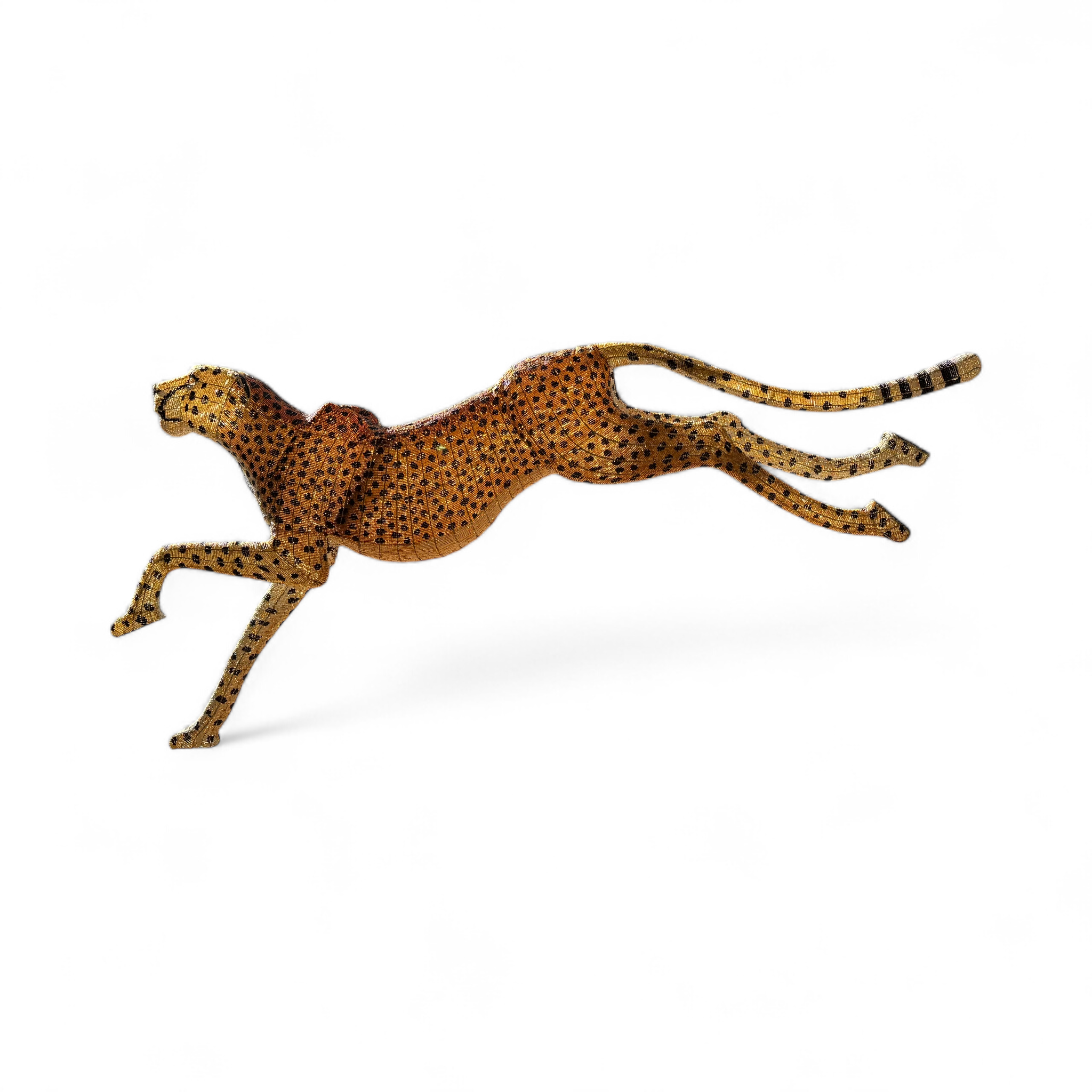 This Beaded Grand Cheetah Sculpture is a remarkable work of art, crafted with meticulous care over 1,200 hours. Each bead is thoughtfully placed to bring the majestic presence of the cheetah to life, making it a unique centerpiece that showcases dedication and artistry. Its intricate details not only celebrate the beauty of nature but also make it a meaningful addition to any collection or space. Perfect for those who appreciate craftsmanship and wildlife-inspired art.