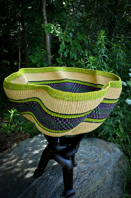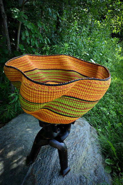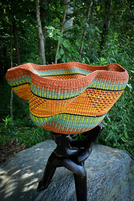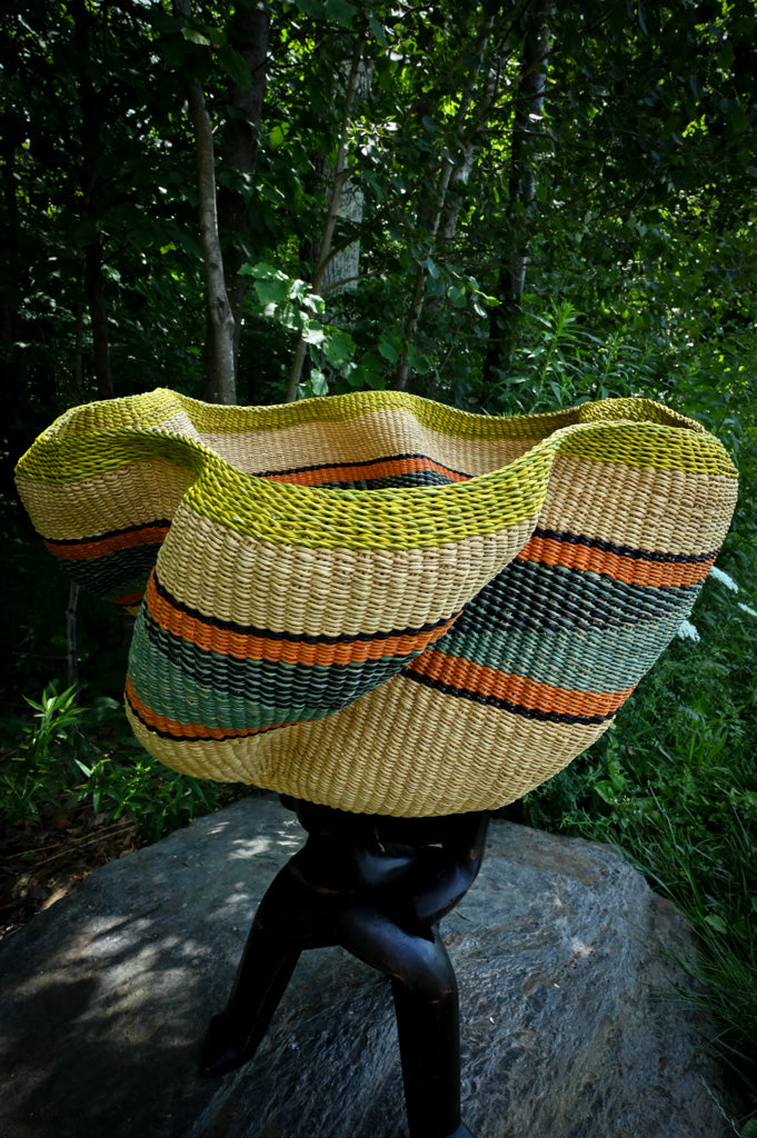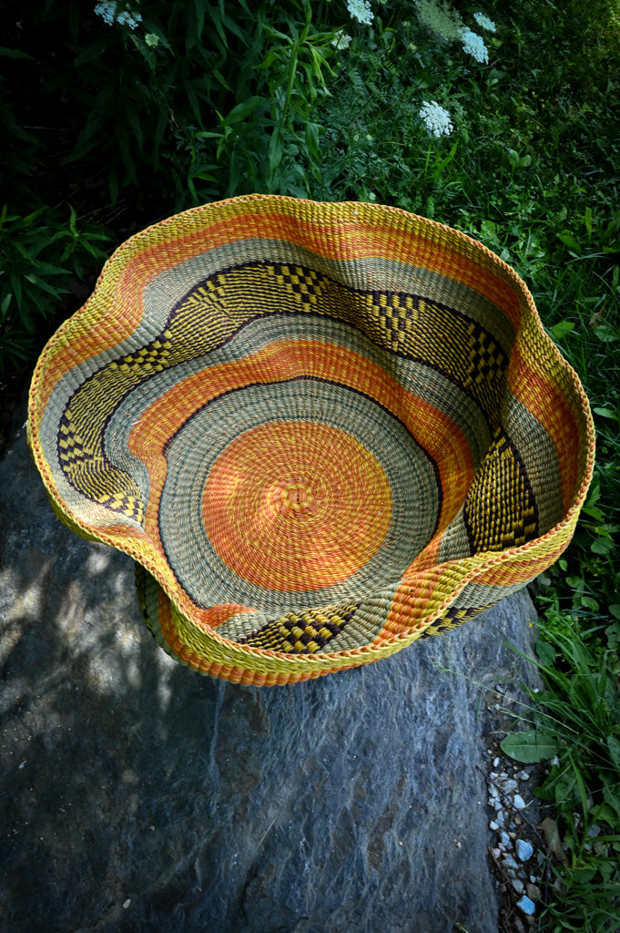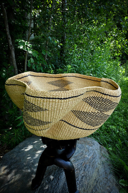 These handwoven African baskets are made from all-natural materials and woven in Bolgatana, Ghana by incredible artisan weavers. These unique African Baskets appeal to the discerning collector who appreciates the challenging journey of creating sumptuous adornment for hearth and home. As each basket is one of a kind, and is made by hand, the sizes are also unique!