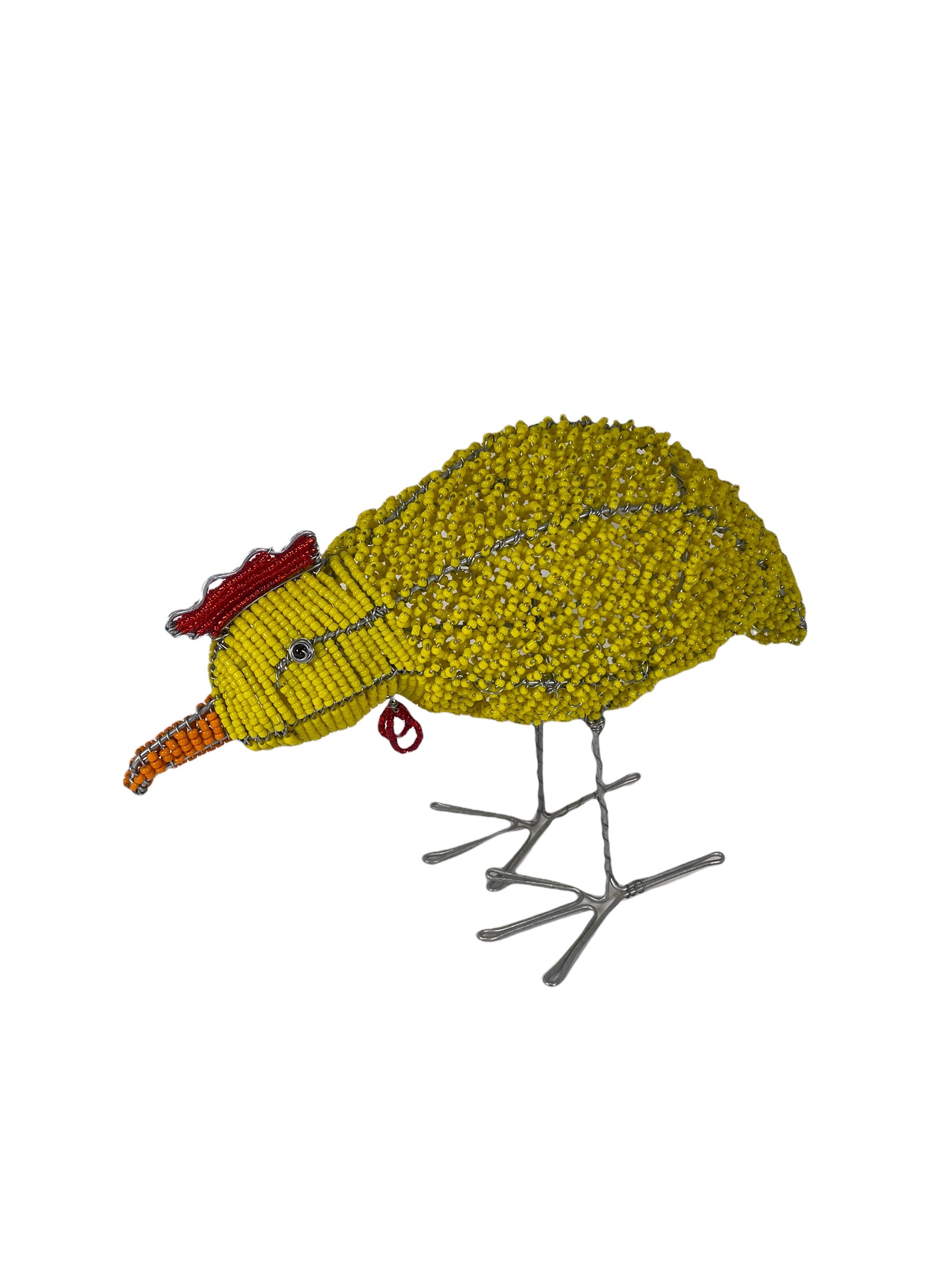 Have you ever wanted a chick without the coop? Take one of these adorable beaded chicks home! (Eggs not included) Handmade using wire and glass beads by Wilber "The Beadman" Nyamukapa, this piece is approximately 8" high - the perfect size for your table or backyard. Due to the handmade nature of this item, please anticipate unique differences - they only add to the charm!