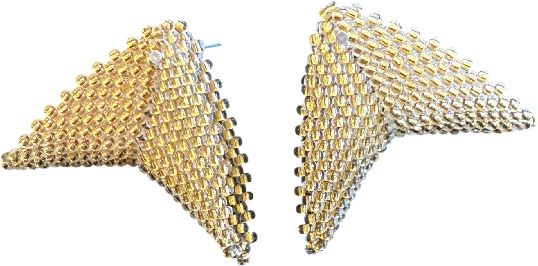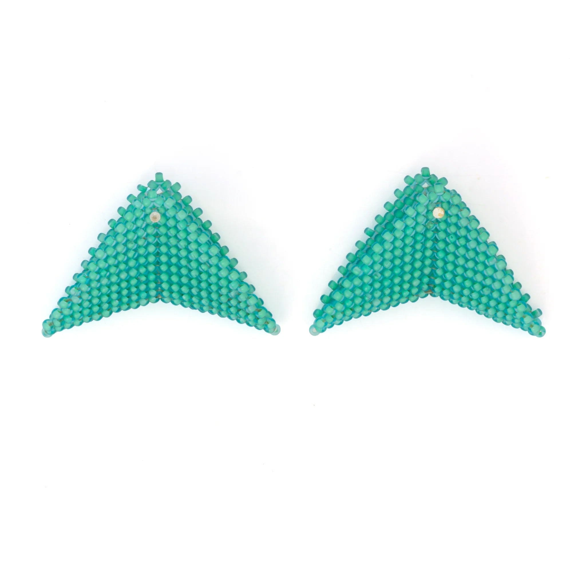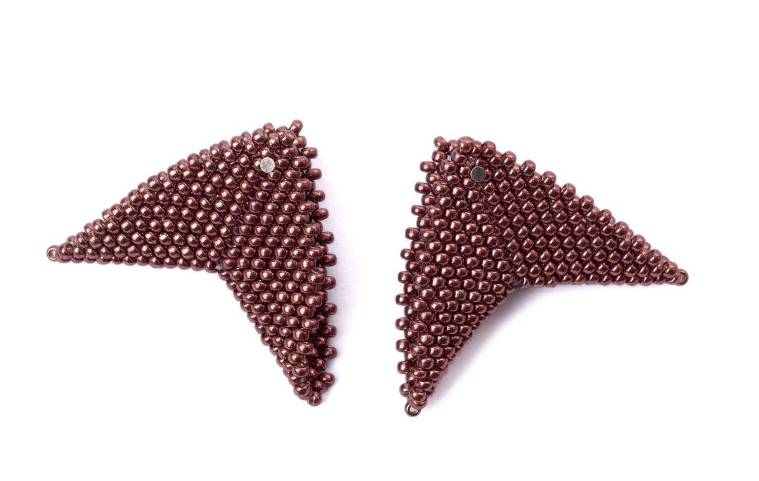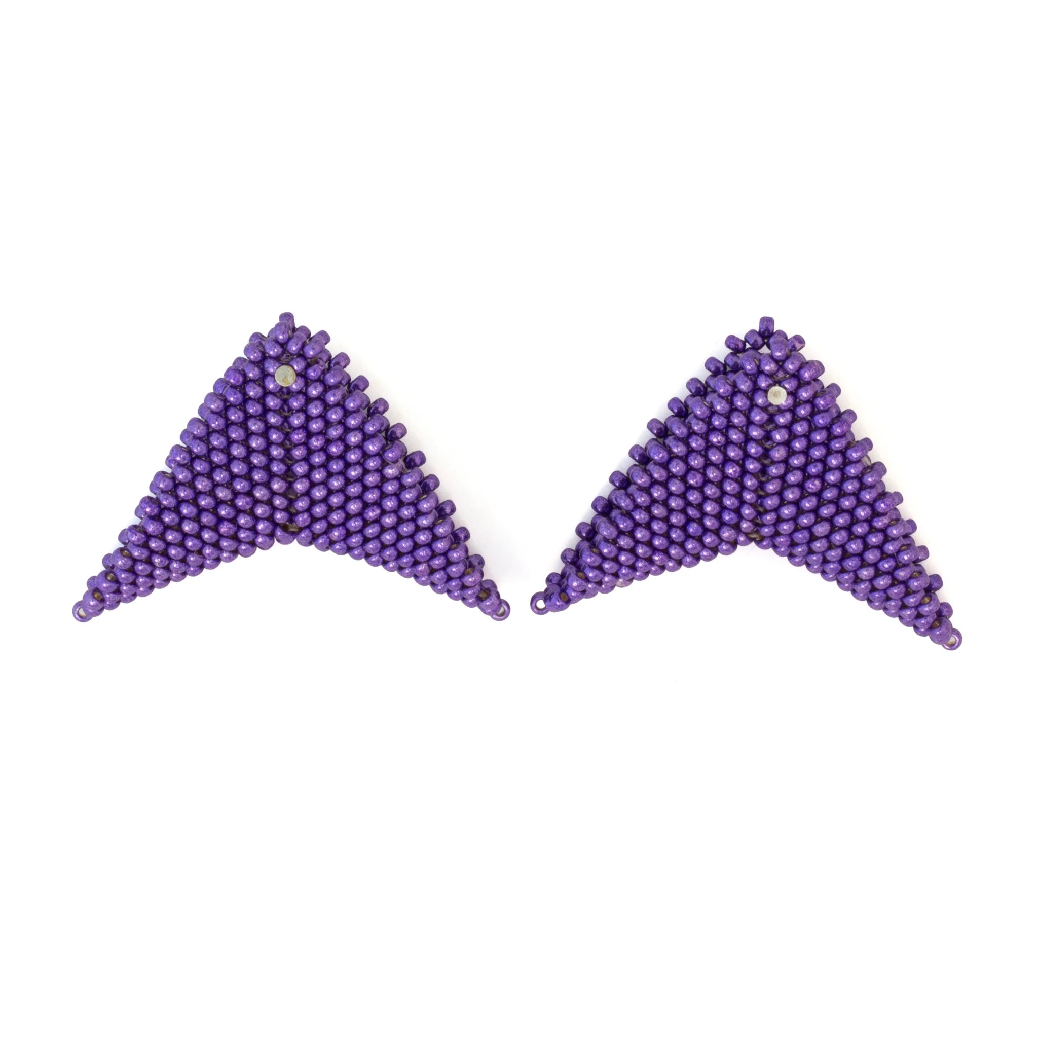 The Grace Jones earrings by Beloved Beadwork are the design that Beloved is most known for! Stunningly crafted out of glass beads, these triangular accessories frame your face with a splash of color.