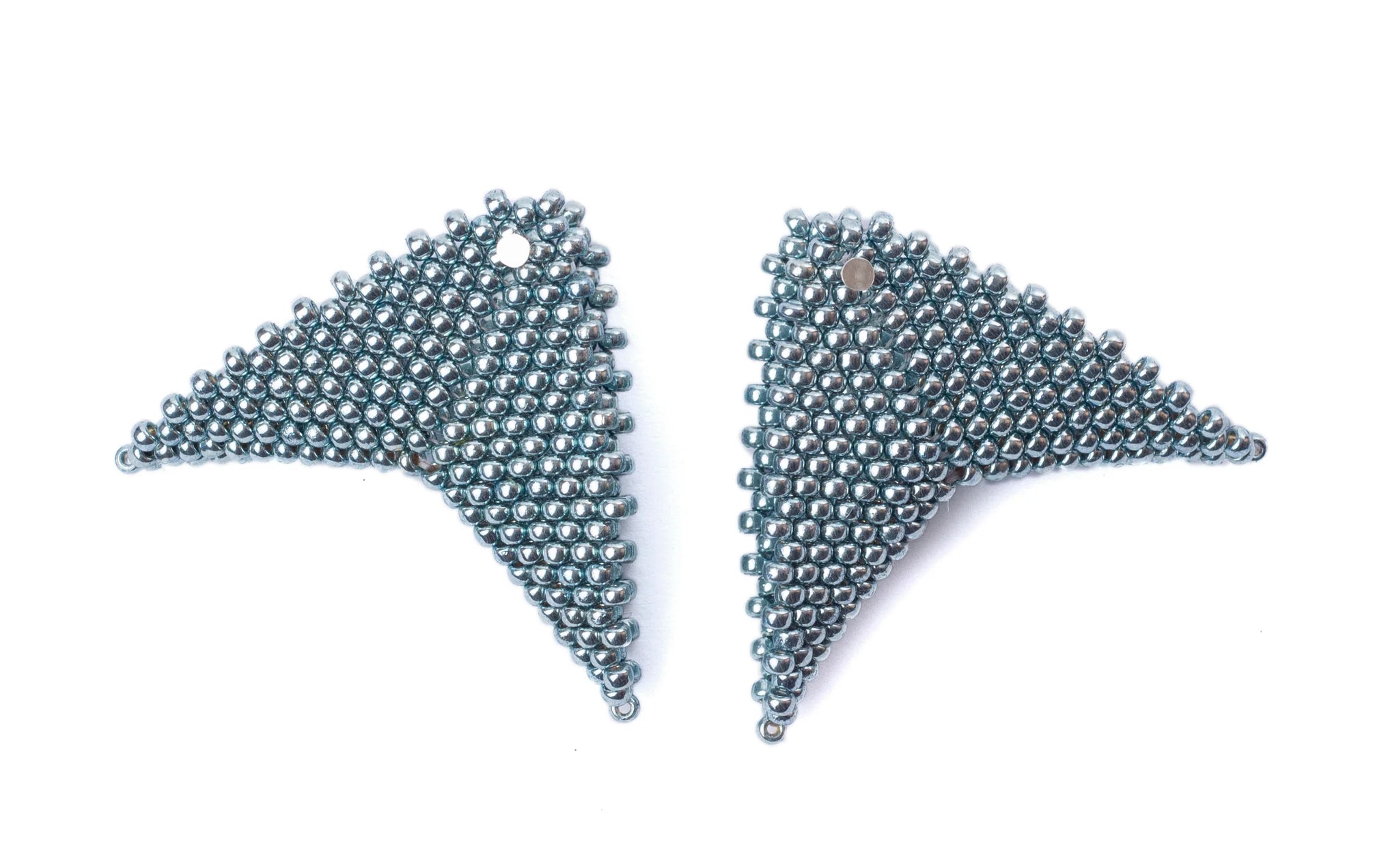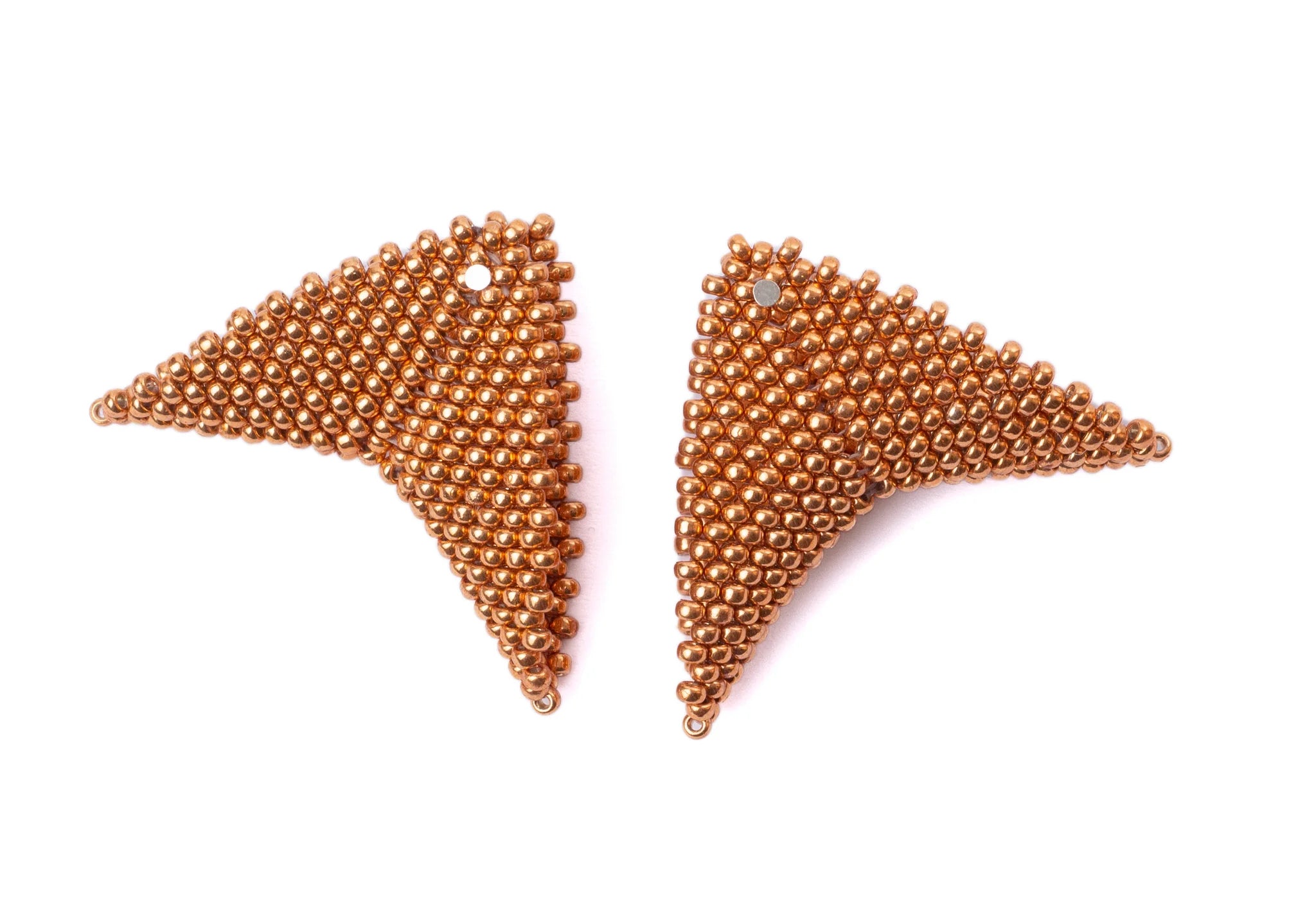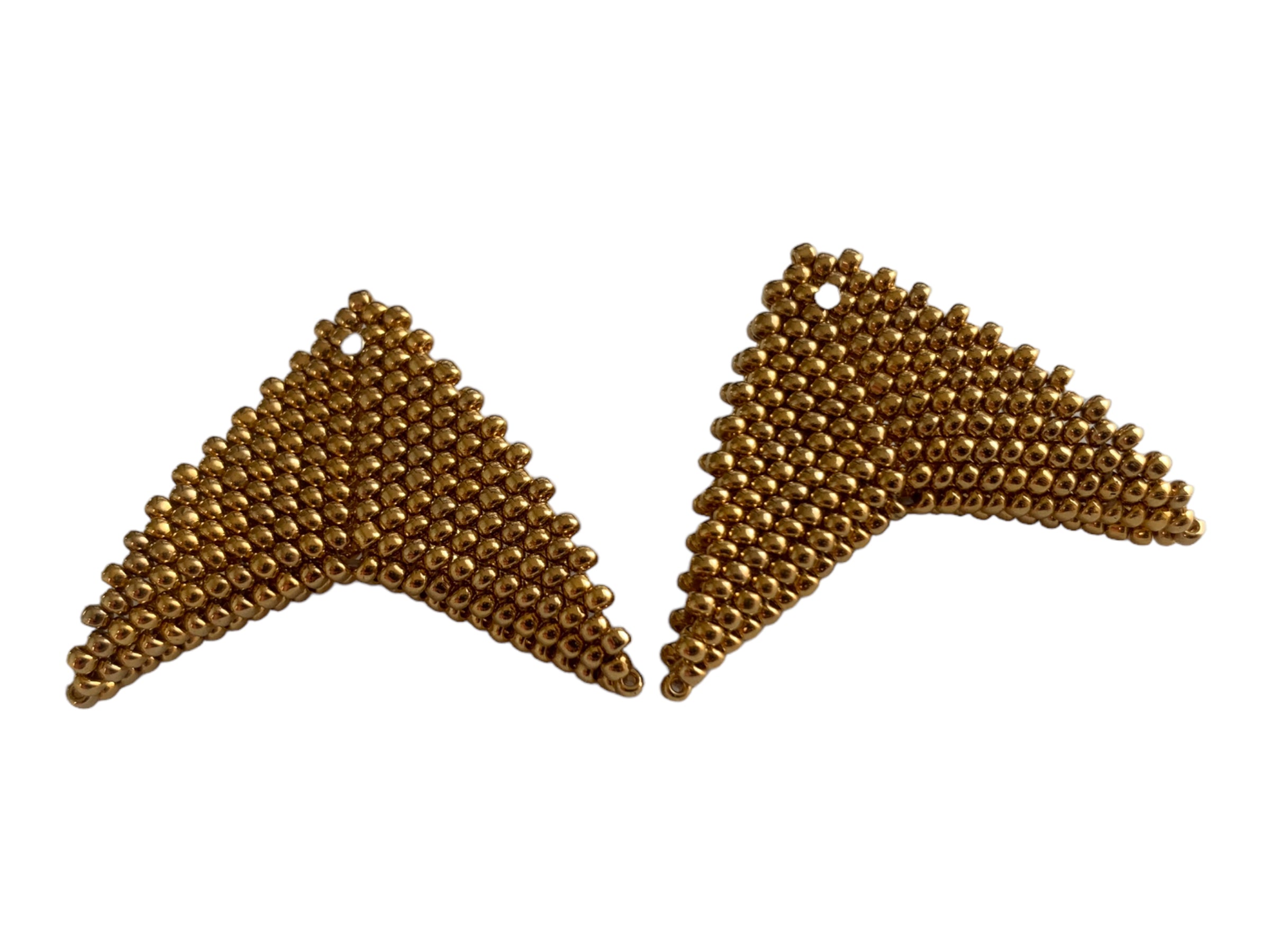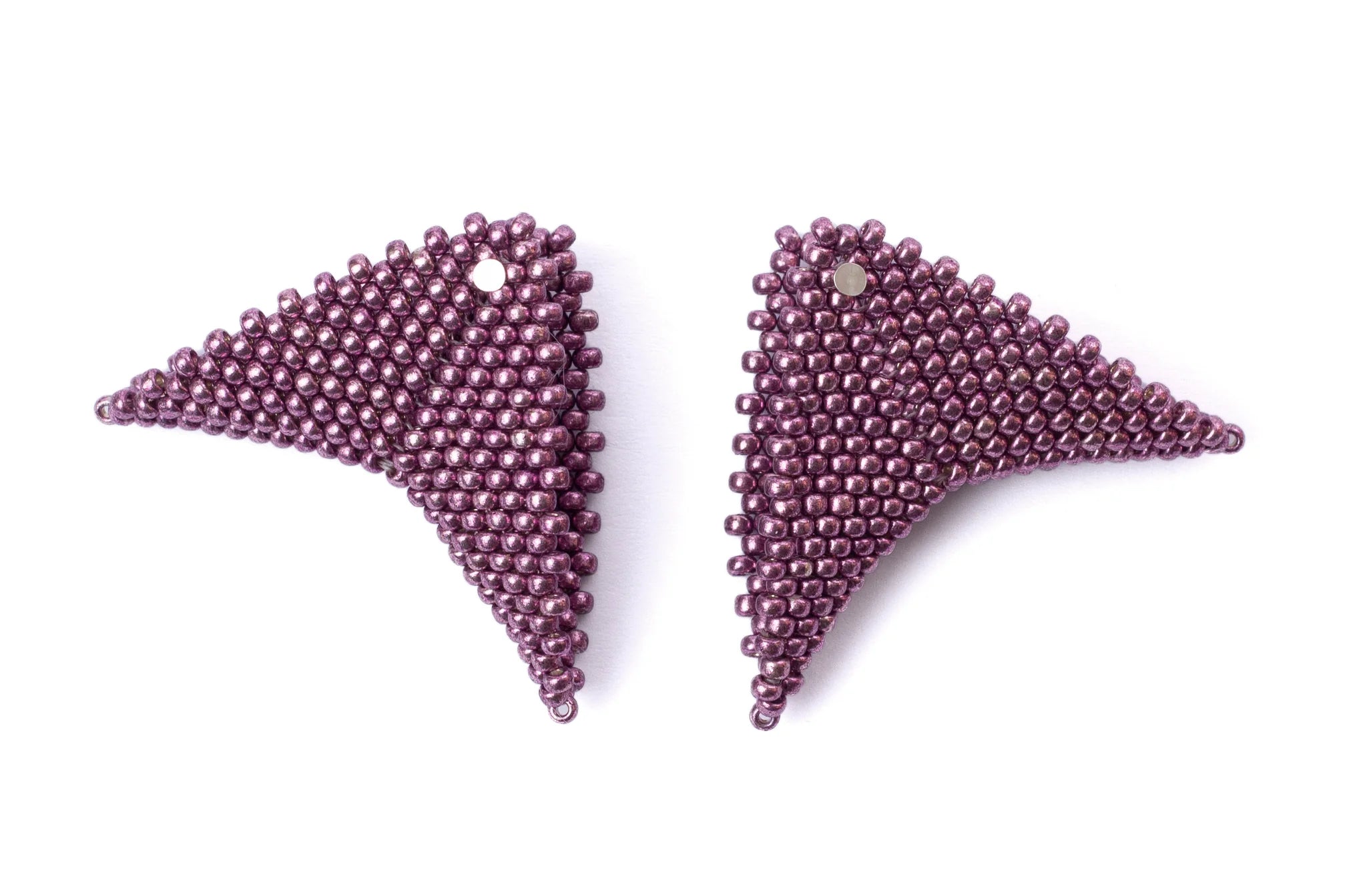 The Grace Jones earrings by Beloved Beadwork are the design that Beloved is most known for! Stunningly crafted out of glass beads, these triangular accessories frame your face with a splash of color.