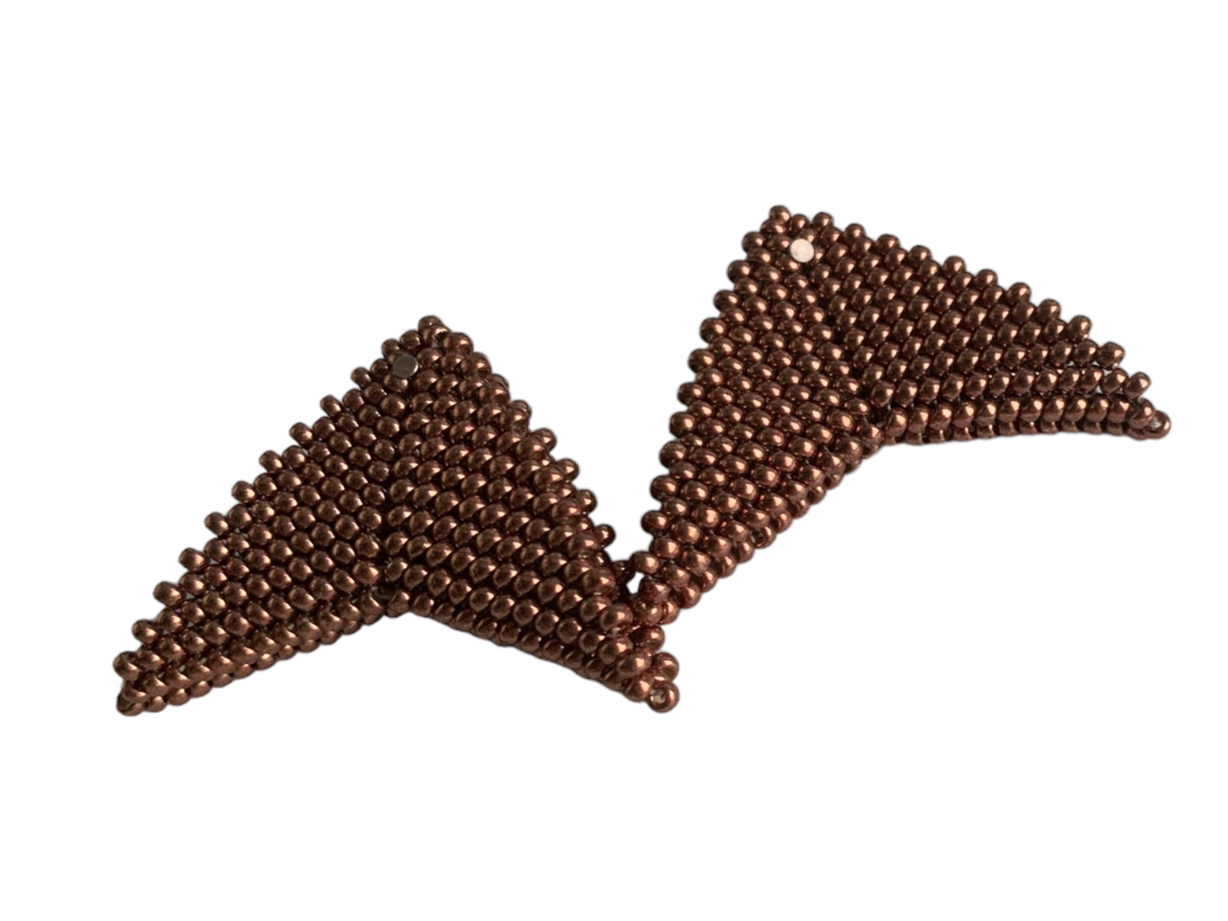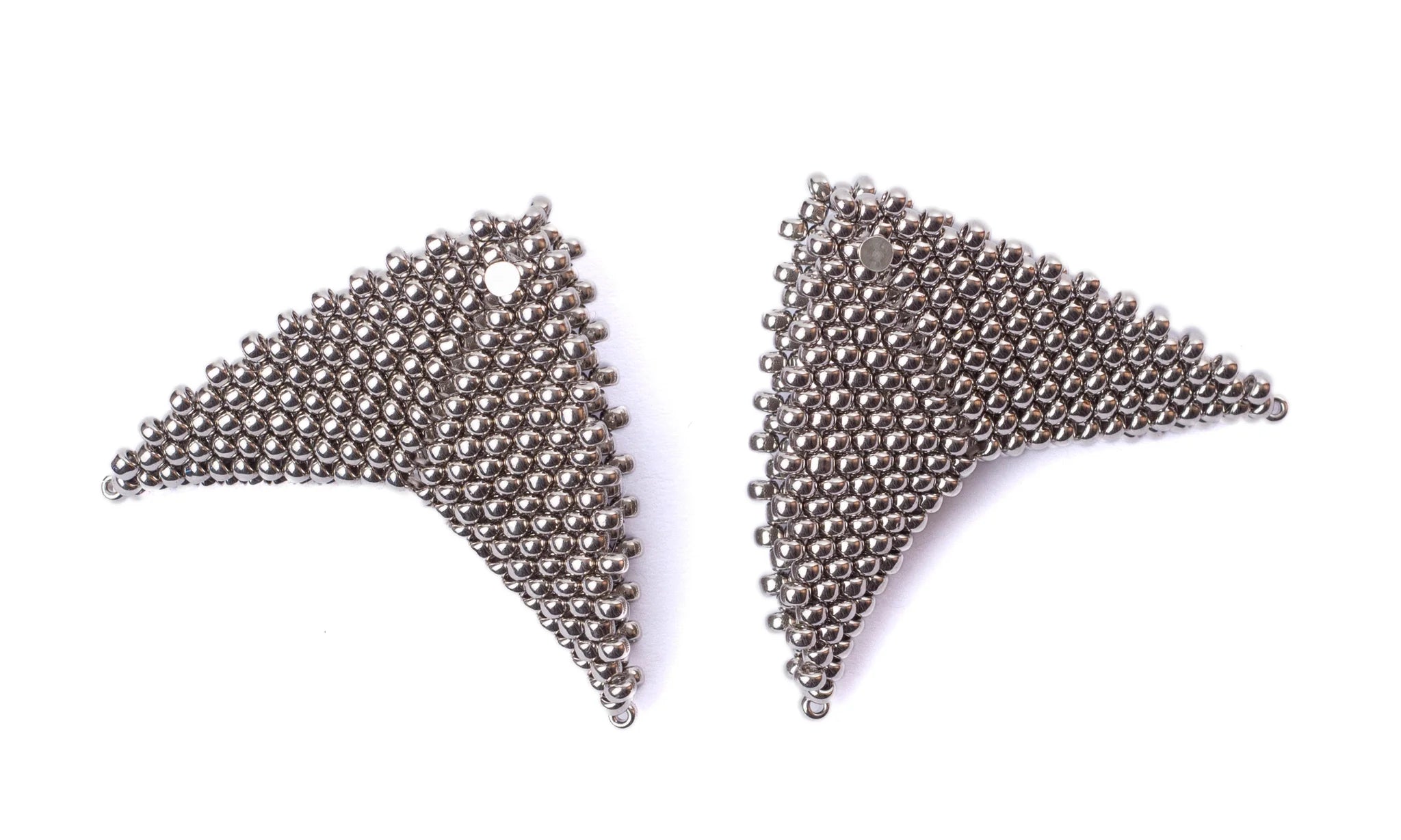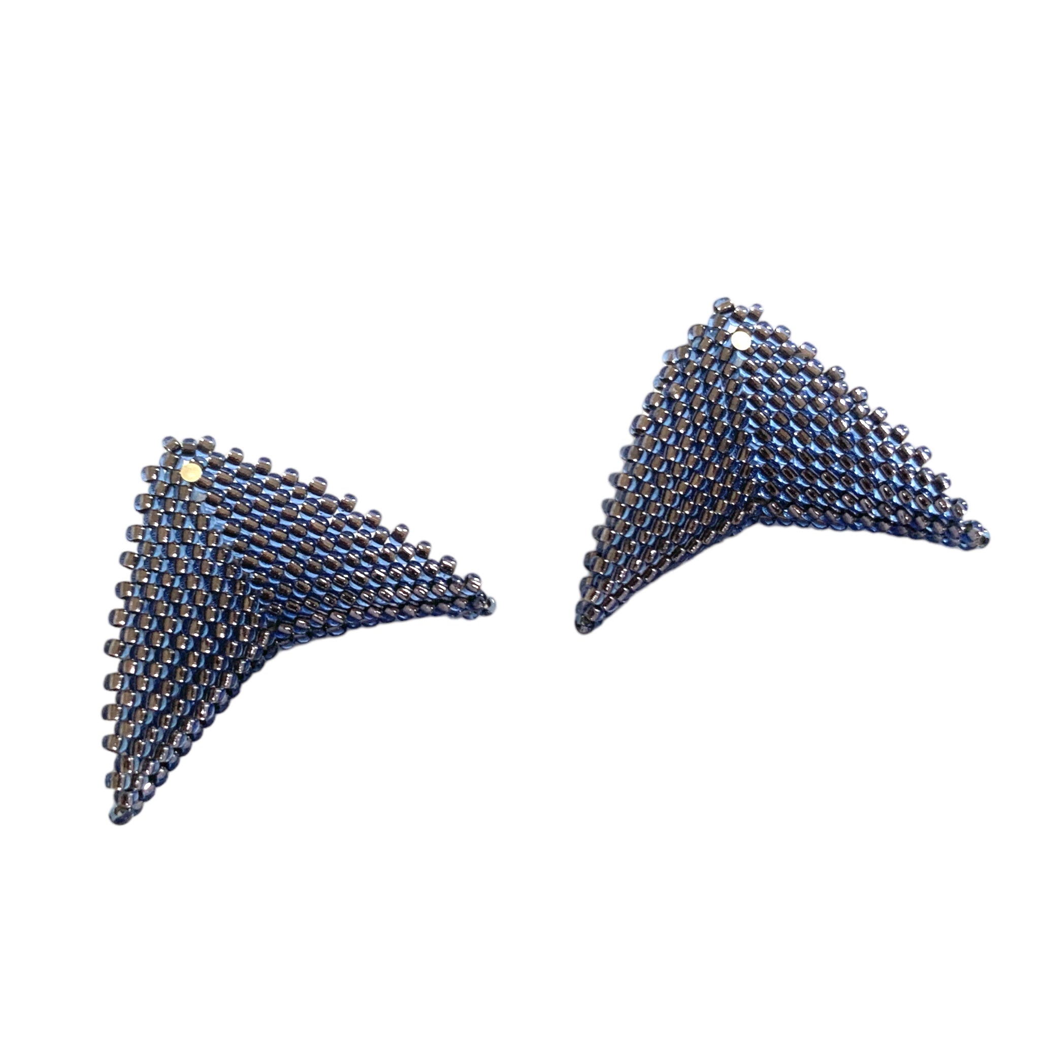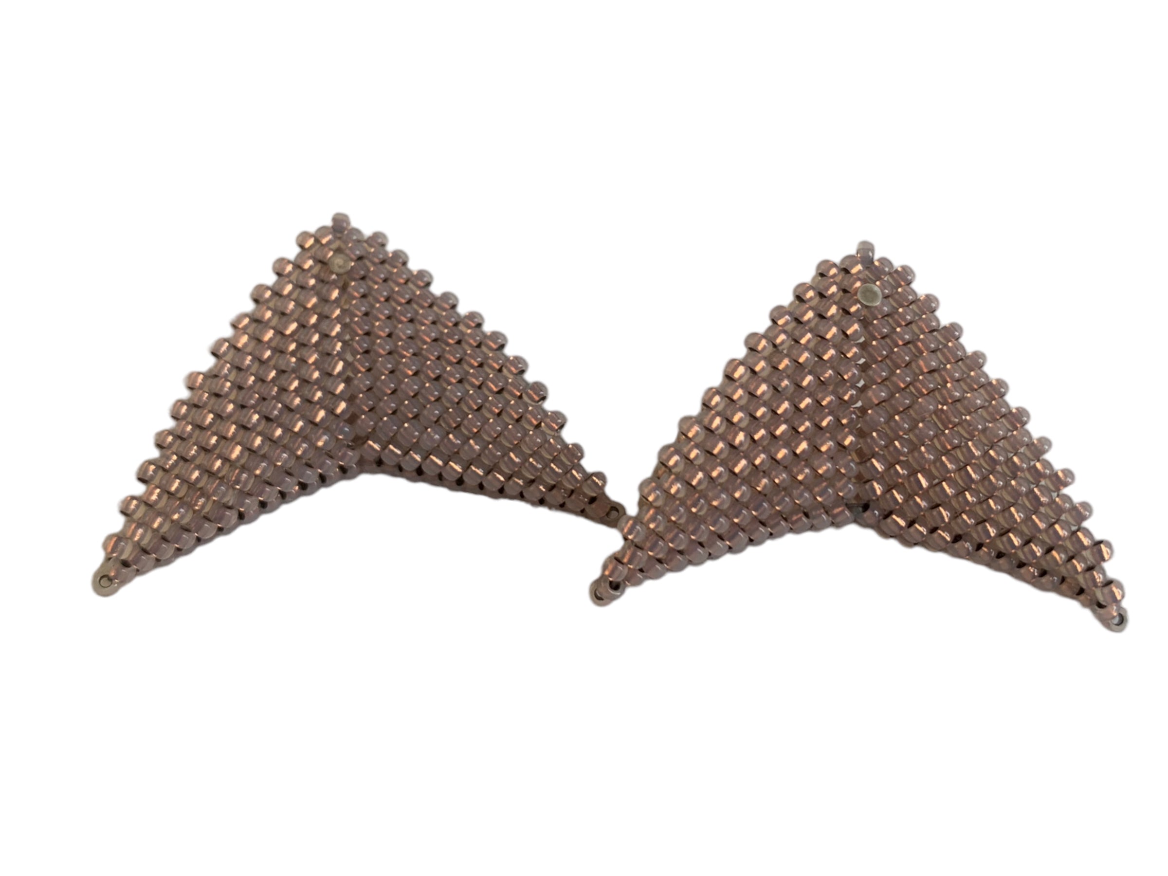 The Grace Jones earrings by Beloved Beadwork are the design that Beloved is most known for! Stunningly crafted out of glass beads, these triangular accessories frame your face with a splash of color.