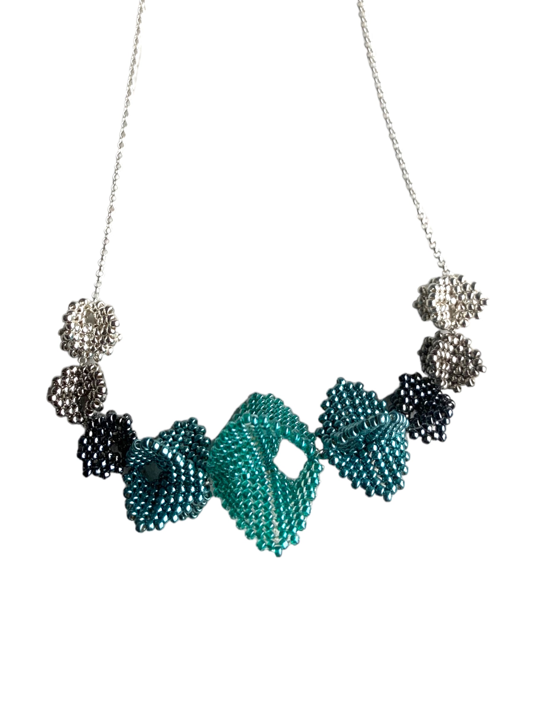 The Infinity Elements Necklace by Beloved Beadwork is a piece of wearable art! Delicately woven infinity symbols are strung together to create a statement piece fit for any occasion. Not only does this necklace take six hours to weave, it also takes undeniable skill.