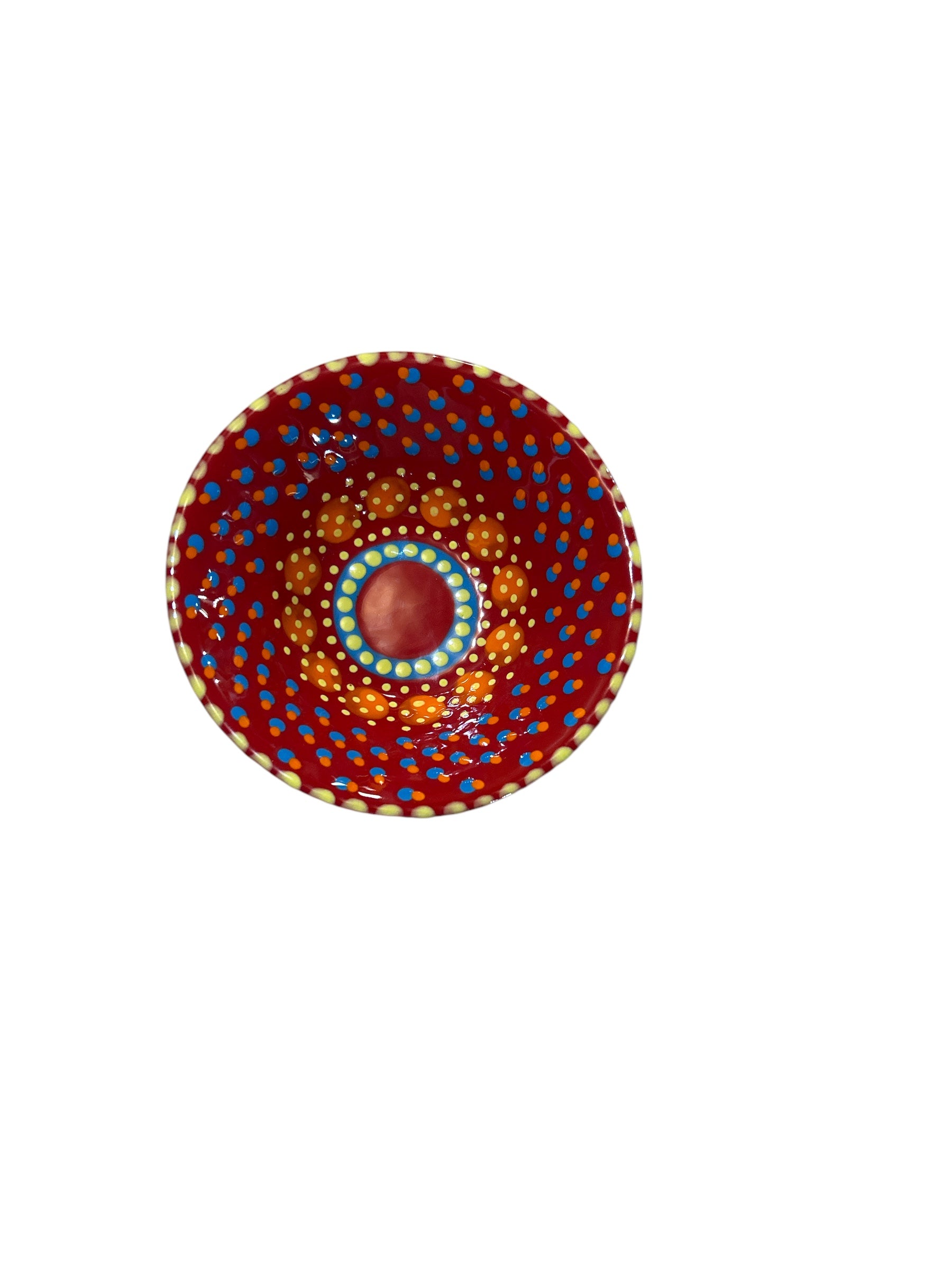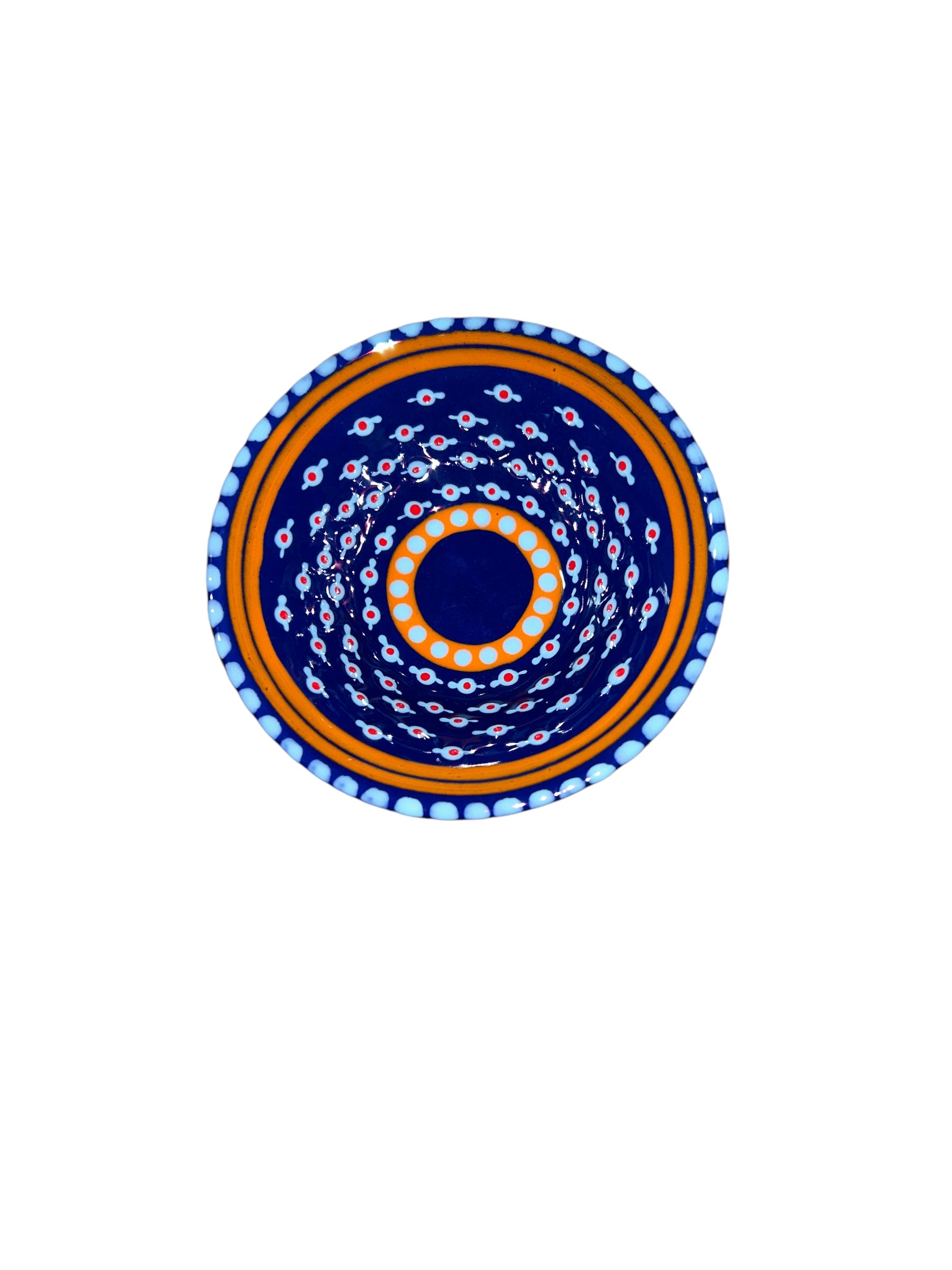 This Classic Mini Nut Bowl is beautiful, decorative, and one of a kind - and it's not just for nuts! Use for fruit, AND nuts, candy, soap, change, or keys - it's a catch all but with a distinctive abstract African style using tactile, bead-like painting on hand-crafted ceramics, for which Potterworks is renowned. Each piece is made by a master artisan. No two works are identical. The main color option is listed and a representative photo is shown. You will receive a similar piece. As all are one of a kind the main color option best describes the piece. All separate pieces in the Classic range coordinate with each other beautifully and can be mixed and matched to create a garden of colors on your table. If you desire to speak with one of our associates they can always pick and choose for you a color selection that will be unique, just like you!