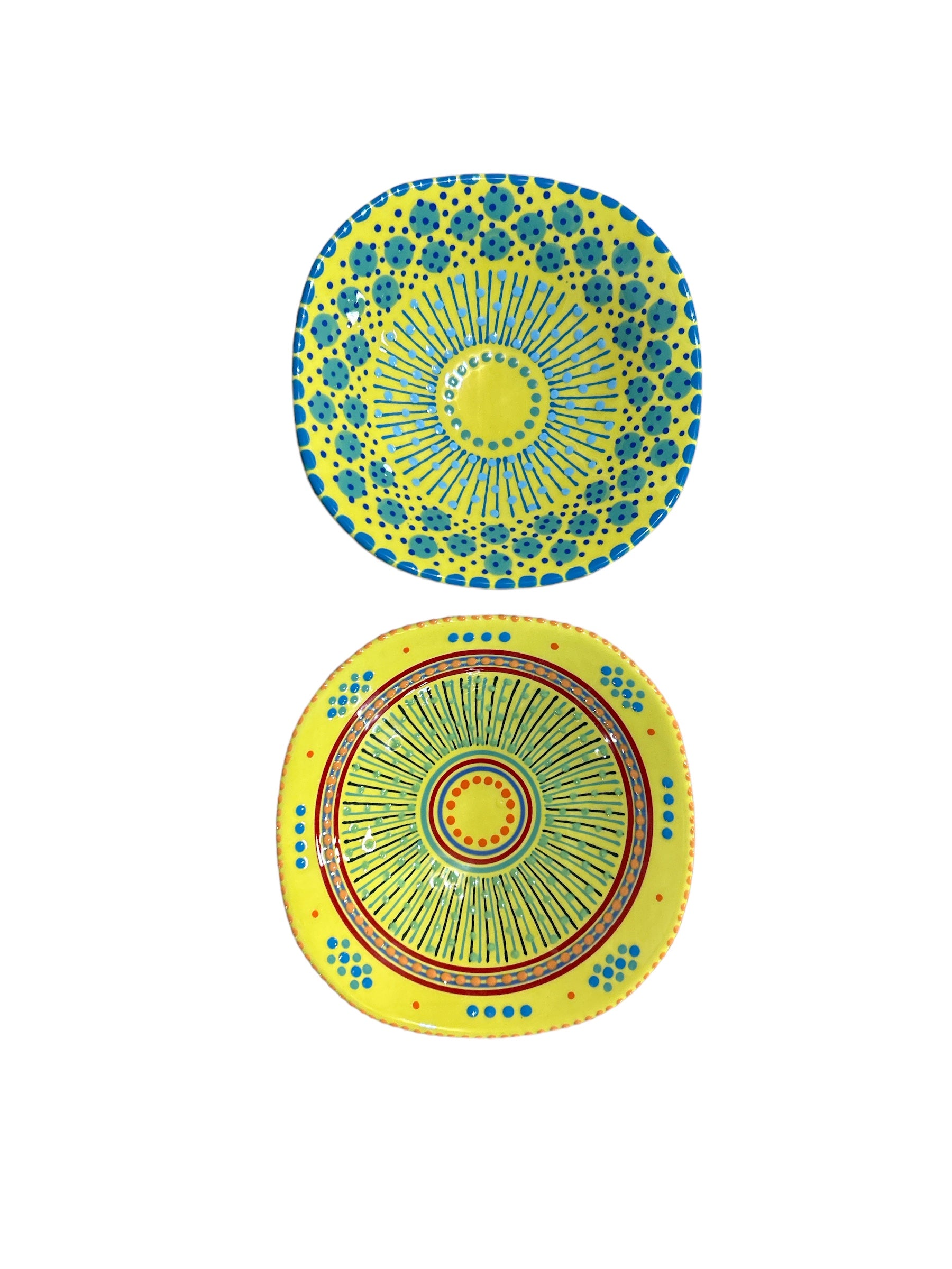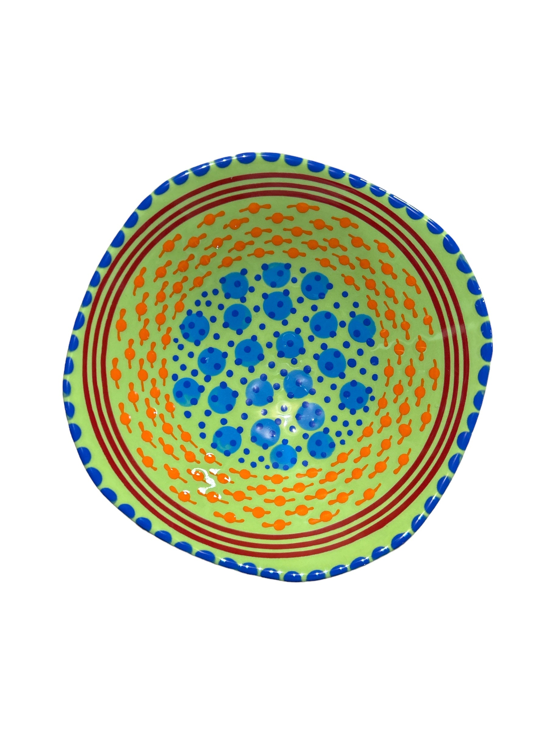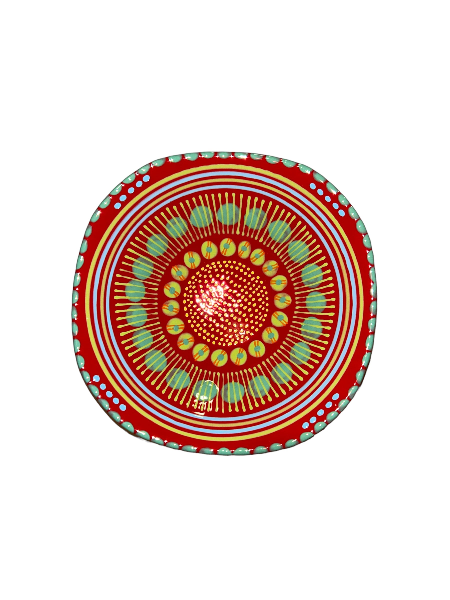 With a distinctive abstract African style using tactile, bead-like painting on hand-crafted ceramics, for which Potterswork is renowned, this piece was made by a master artisan. Each piece is made by a master artisan. No two works are identical. The main color option is listed and a representative photo is shown. You will receive a similar piece. As all are one of a kind the main color option best describes the piece. All separate pieces in this range coordinate with each other beautifully and can be mixed and matched to create a garden of colors on your table. If you desire to speak with one of our associates they can always pick and choose for you a color selection that will be unique, just like you!