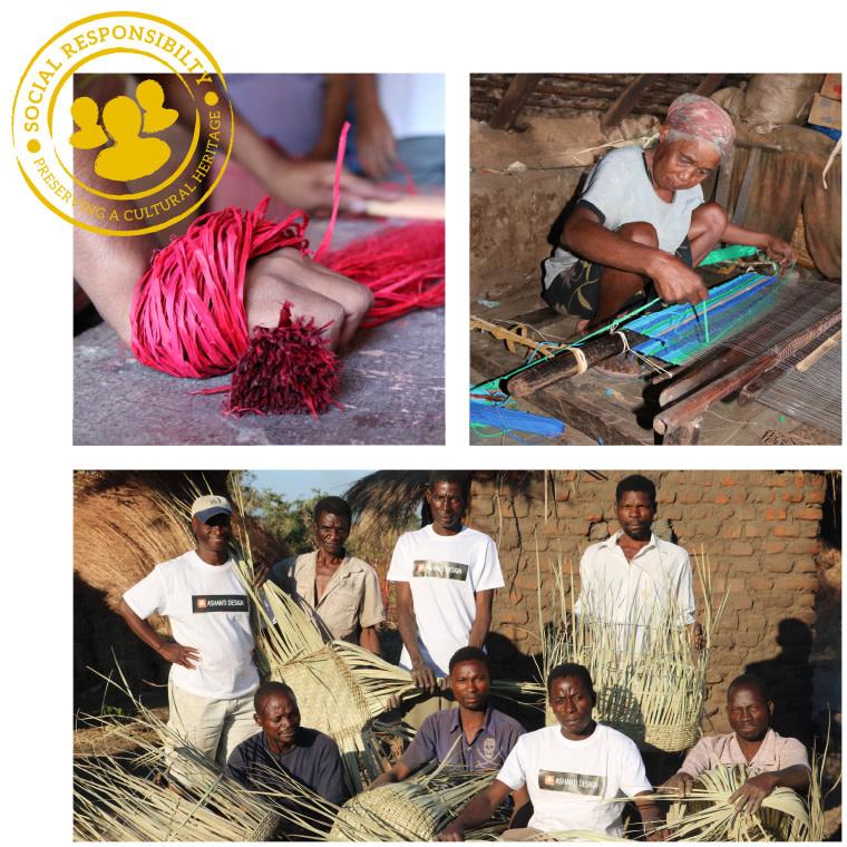 Crafted with African classical weaving techniques from recycling T-shirt material that would otherwise be discarded into landfills. Each T-shirt is hand-stripped, dyed by hand, re-woven and then crafted into this iconic, colorful piece. Approx. Size: 7.75" D x 7.5" H.