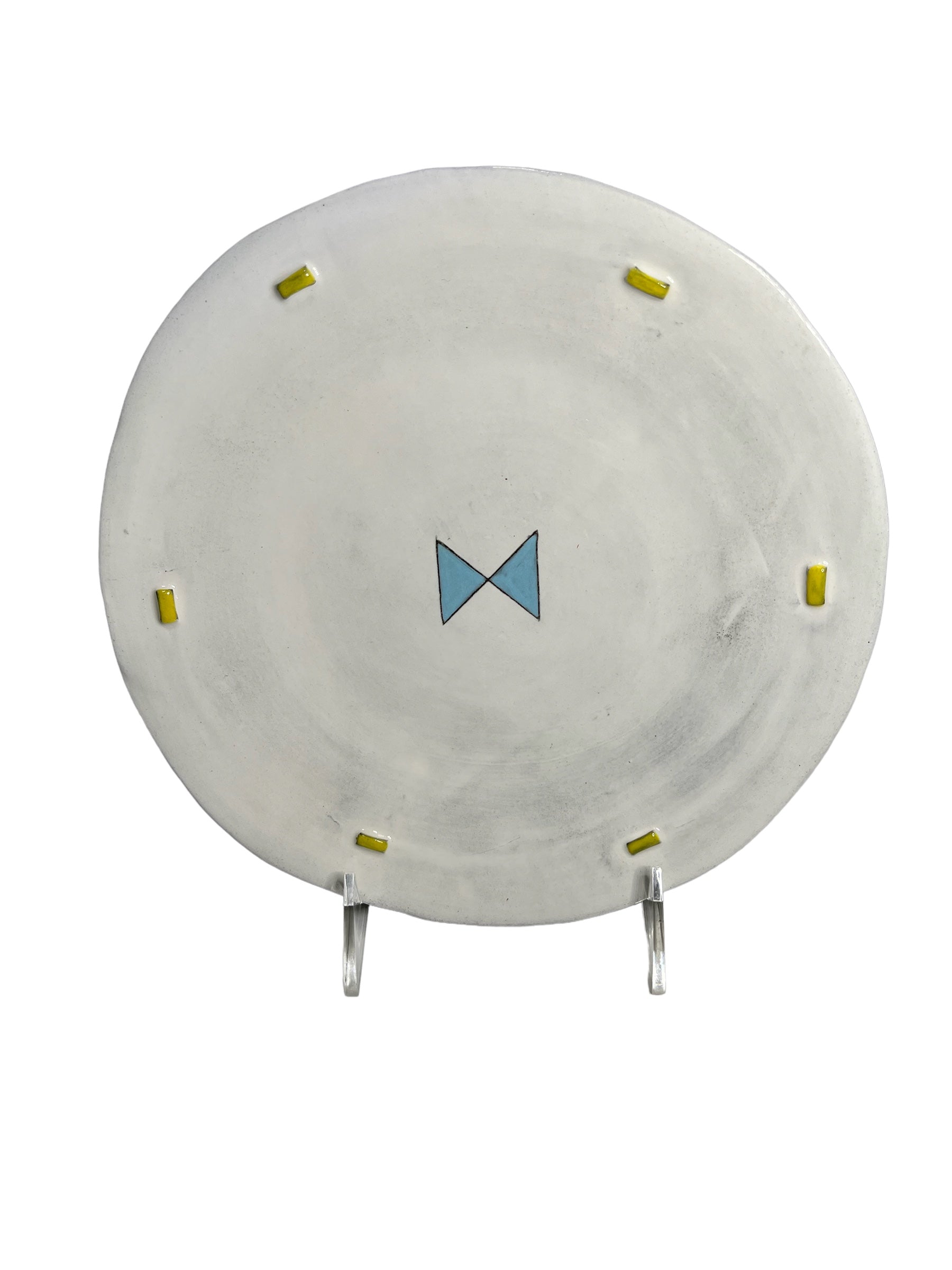 This one of a kind Colour Me Bright 9" Plate draws inspiration from the patterns, colors, and textures of the African landscape. Hand thrown, painted and designed with unique variations. Clementina Van der Walt is a well-known South African studio potter, based in Cape Town, whose work is represented in several South African national and international collections. “My intention is to ‘seek the sacred in the ordinary’. Making contemplative and utilitarian objects by hand in the ceramic discipline, with cultural and historical links to rituals of everyday life, encompasses society, religion and philosophy. The archetypal significance of the home, as a point where our spiritual and earthy lives interconnect is where I have attempted to explore these ideas.”