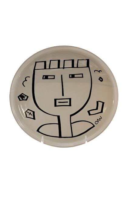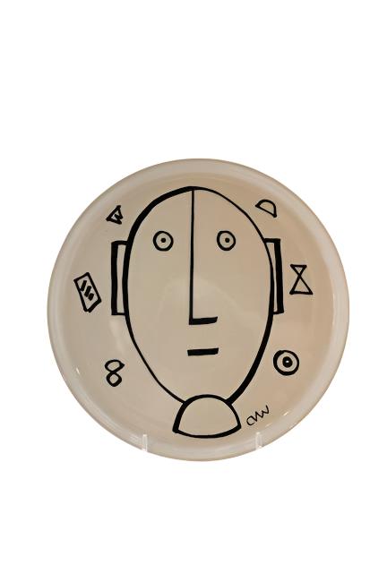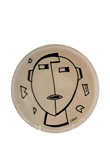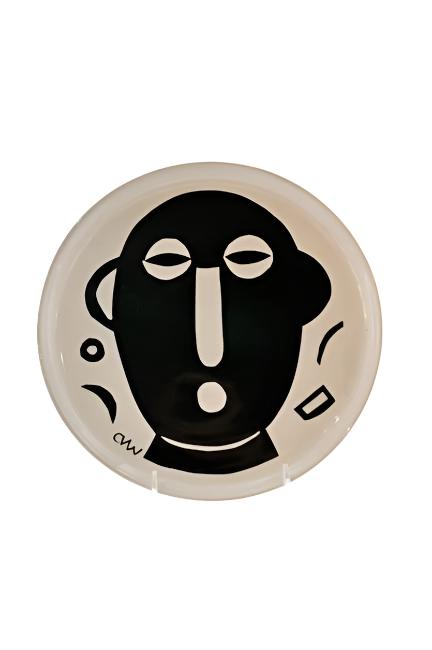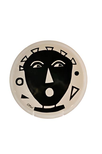 This Mask Series Plate was made by Clementina Van der Walt, in Cape Town, South Africa. Bold, contemporary, modern lines with a hint of humor – the Mask Series mugs and plates bring a smile to your home. These ceramic items are food safe and may be gently washed in a dishwasher and by hand.