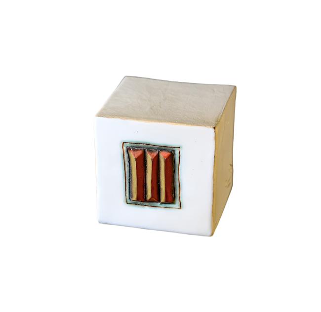 Hennie Meyer's first BLOCKS were exhibited as a visual diary of year’s making an installation consisting of more than 300 pieces in 2008. This installation expressed Hennie’s influence and fascination with multiples and was influenced by visits to the Terracotta Warriors in China and the Holocaust Memorial by American architect, Peter Eisenman in Berlin. Hennie continued making blocks as it provides a canvas for continuous expression, development and experimentation with techniques and glazes. Each one is one of a kind, unique, and a piece of contemporary ceramic art to grace your home. Stack them, hang them, tilt them - versatile artwork that draws your heart and mind into a visual meditation. 3.5"x 3.5" x 3.5"