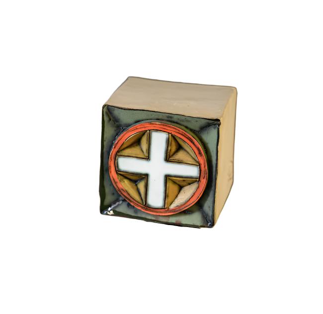 Hennie Meyer's first BLOCKS were exhibited as a visual diary of year’s making an installation consisting of more than 300 pieces in 2008. This installation expressed Hennie’s influence and fascination with multiples and was influenced by visits to the Terracotta Warriors in China and the Holocaust Memorial by American architect, Peter Eisenman in Berlin. Hennie continued making blocks as it provides a canvas for continuous expression, development and experimentation with techniques and glazes. Each one is one of a kind, unique, and a piece of contemporary ceramic art to grace your home. Stack them, hang them, tilt them - versatile artwork that draws your heart and mind into a visual meditation. 3.5"x 3.5" x 3.5"