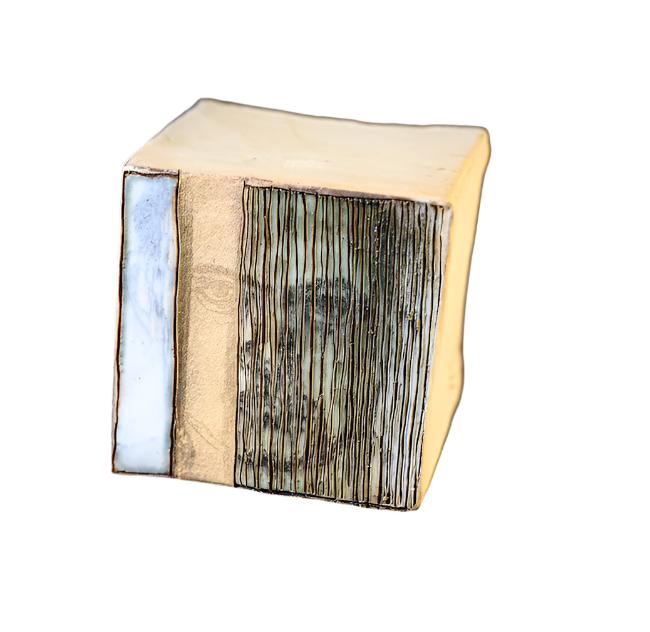 Hennie Meyer's first BLOCKS were exhibited as a visual diary of year’s making an installation consisting of more than 300 pieces in 2008. This installation expressed Hennie’s influence and fascination with multiples and was influenced by visits to the Terracotta Warriors in China and the Holocaust Memorial by American architect, Peter Eisenman in Berlin. Hennie continued making blocks as it provides a canvas for continuous expression, development and experimentation with techniques and glazes. Each one is one of a kind, unique, and a piece of contemporary ceramic art to grace your home. Stack them, hang them, tilt them - versatile artwork that draws your heart and mind into a visual meditation. 3.5"x 3.5" x 3.5"