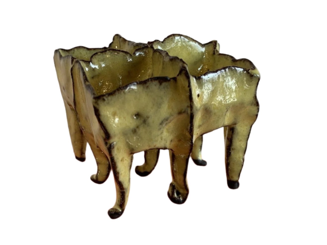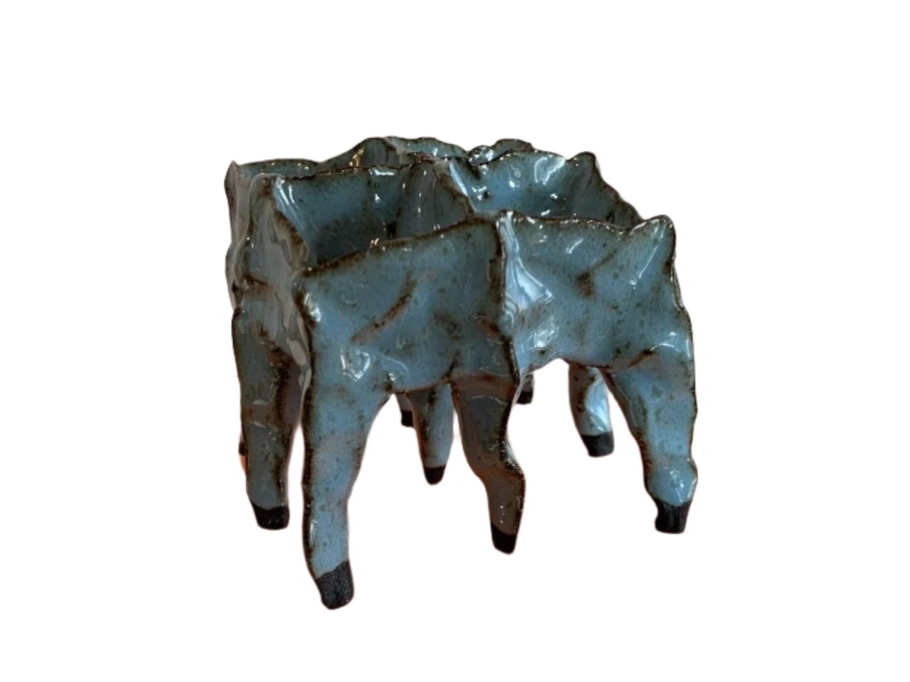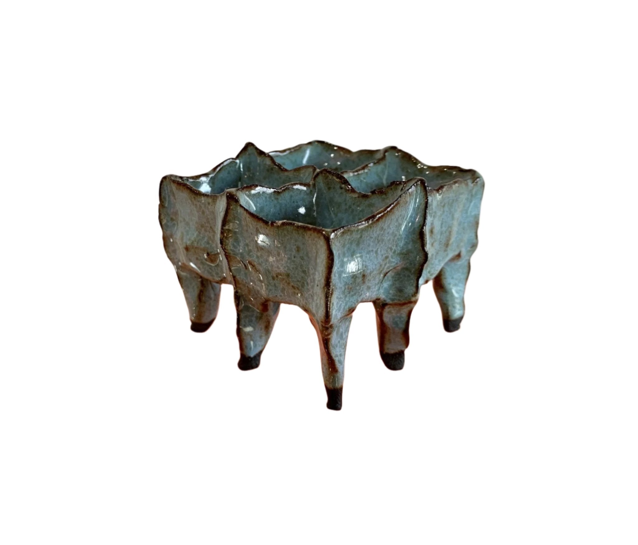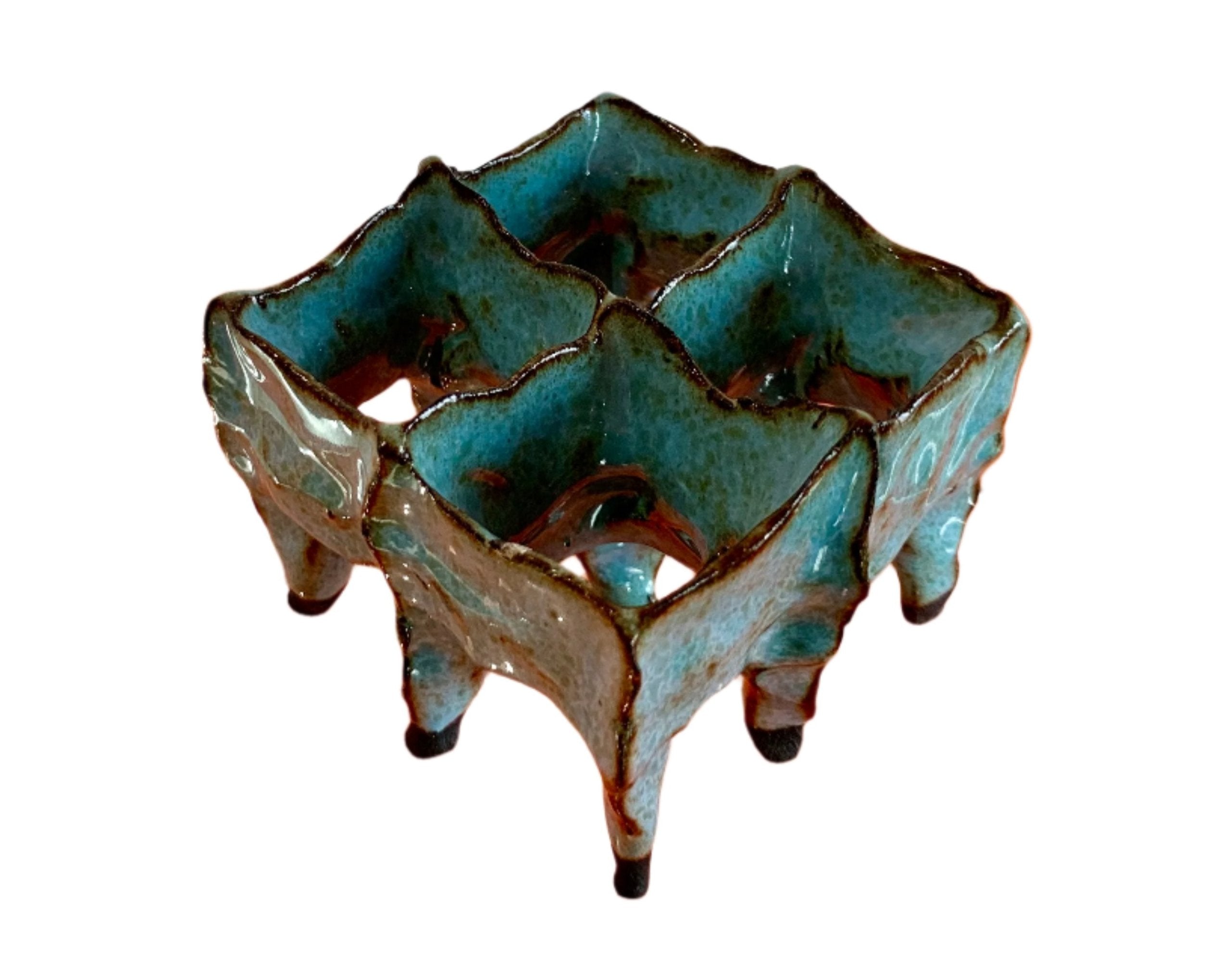 The Boogie Woogie series was inspired by the Dutch painter Mondrian’s painting “Broadway Boogie Woogie.” The hand built ceramic “Boogie Woogies” are abstract ceramic forms that allude to the crude mark making found in some urban contemporary art. The forms show the contrast, vibrancy, and energy of a living city. Not only are the forms architectural but they become the creatures which populate the structured chaos of cities themselves.