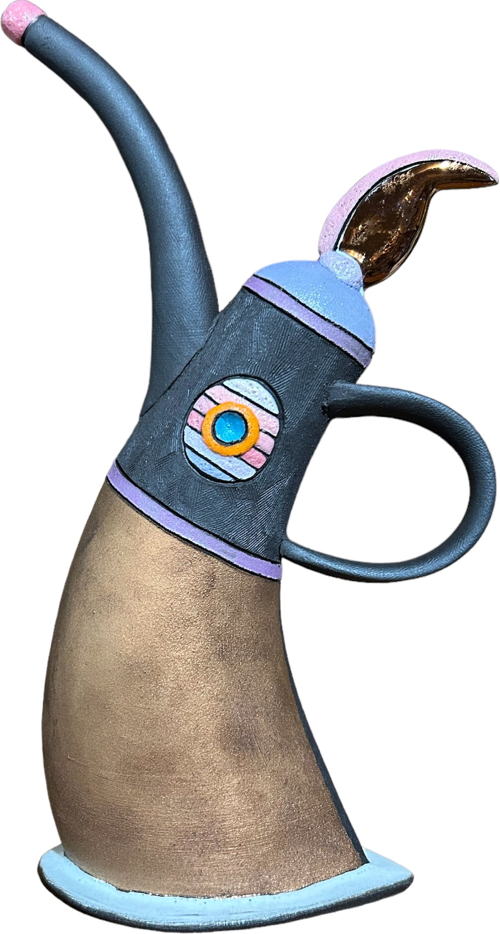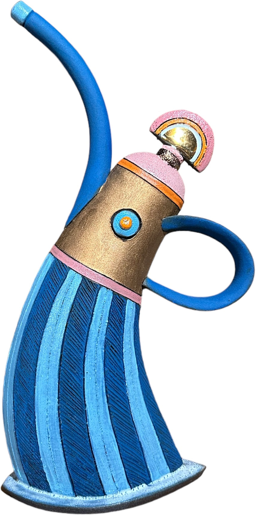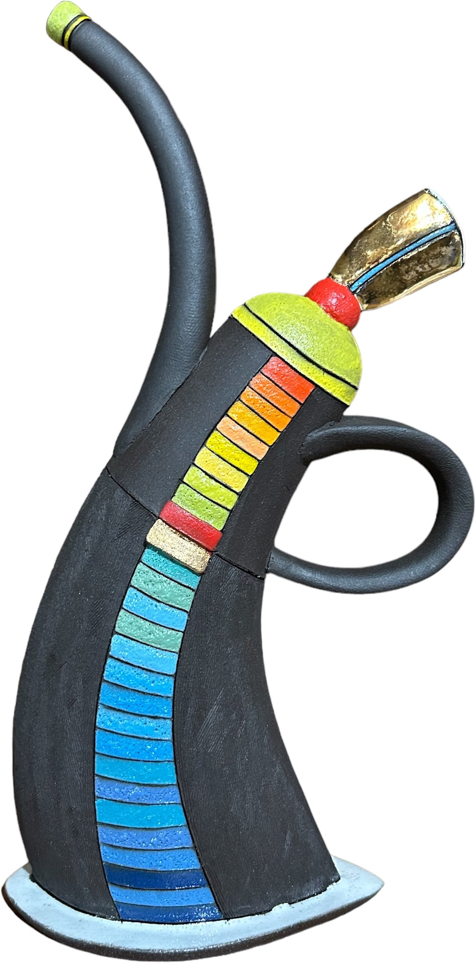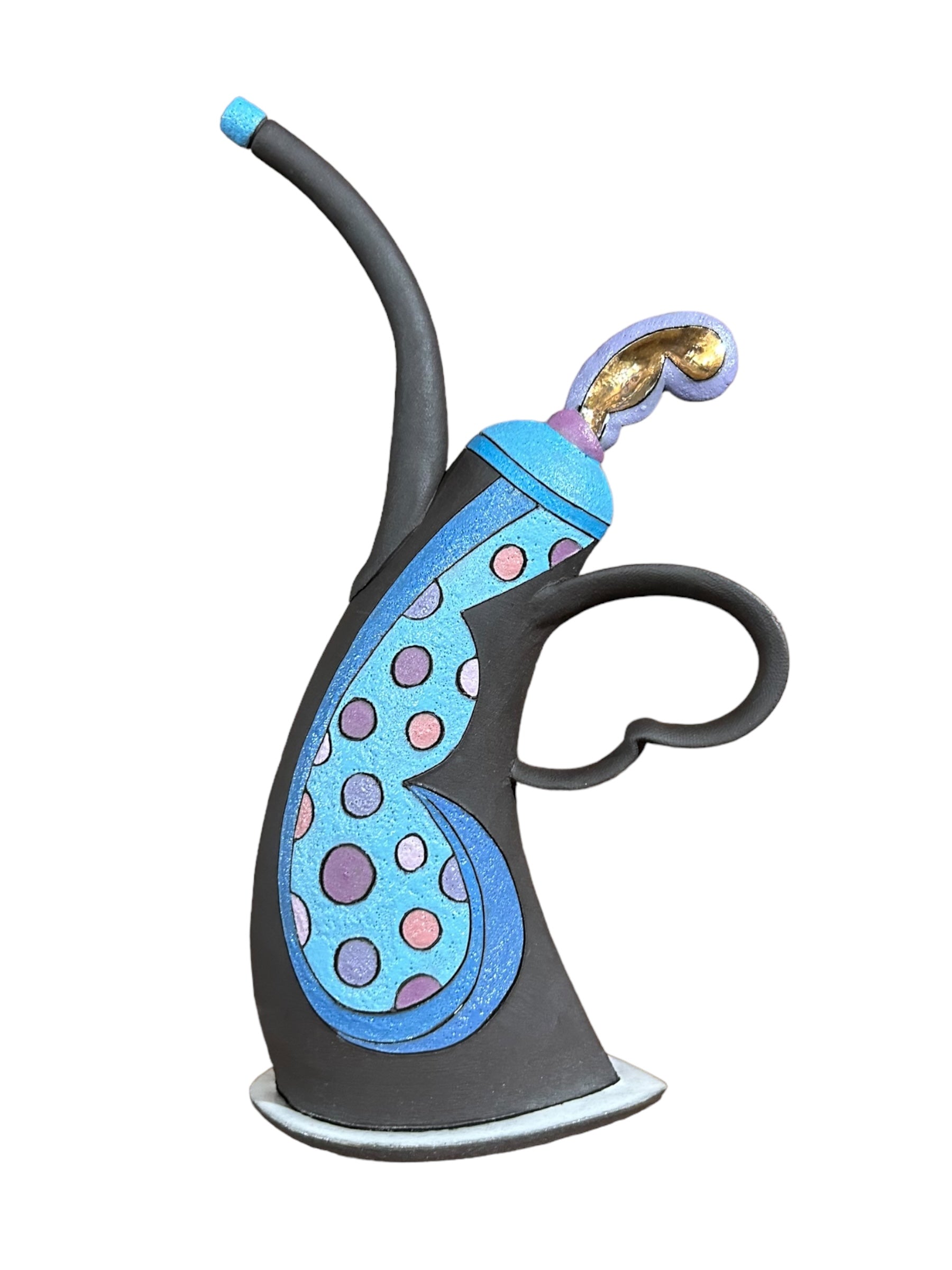 These whimsical caricatures of teapots were created by Hennie Meyer, an acclaimed Artist and ceramist.  They will bring a joyful spirit to your home, or are wonderful gifts to share with those who have a unique flair!  They are for decoration, and cannot pour actual tea - just in case you were fooled.  All are one of a kind, hand created, fired, and hand painted.