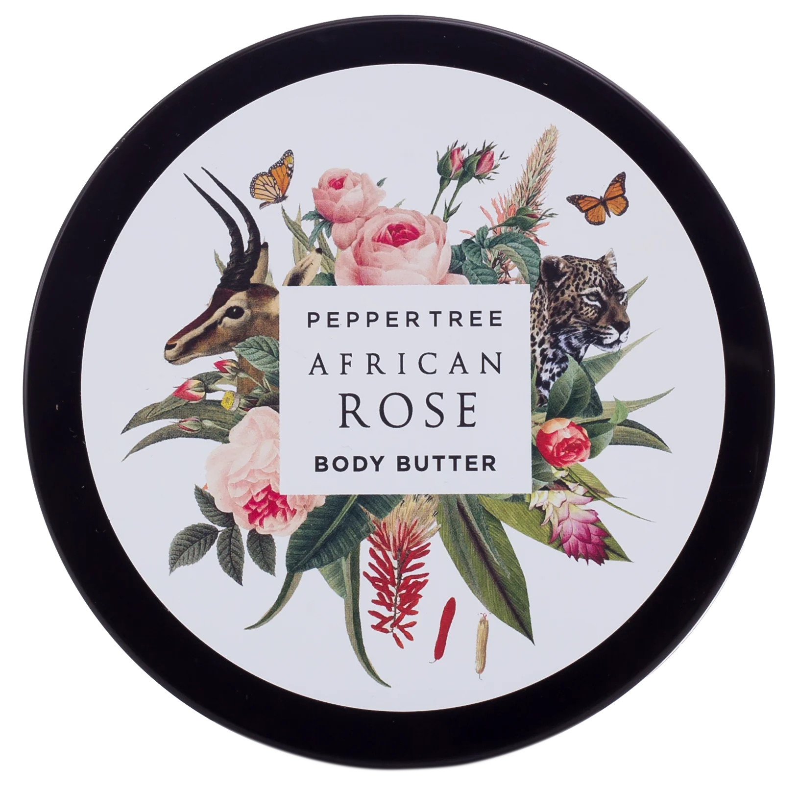 Indulge with Pepper Tree's Rose infusion velvety soft body butter with a hint of Jasmine and Violet accompanied by enticing hints of the valley. A non-sticky, deeply moisturizing butter enriched with Rosa Flower extracts perfect for all skin types due to its calming and healing abilities.