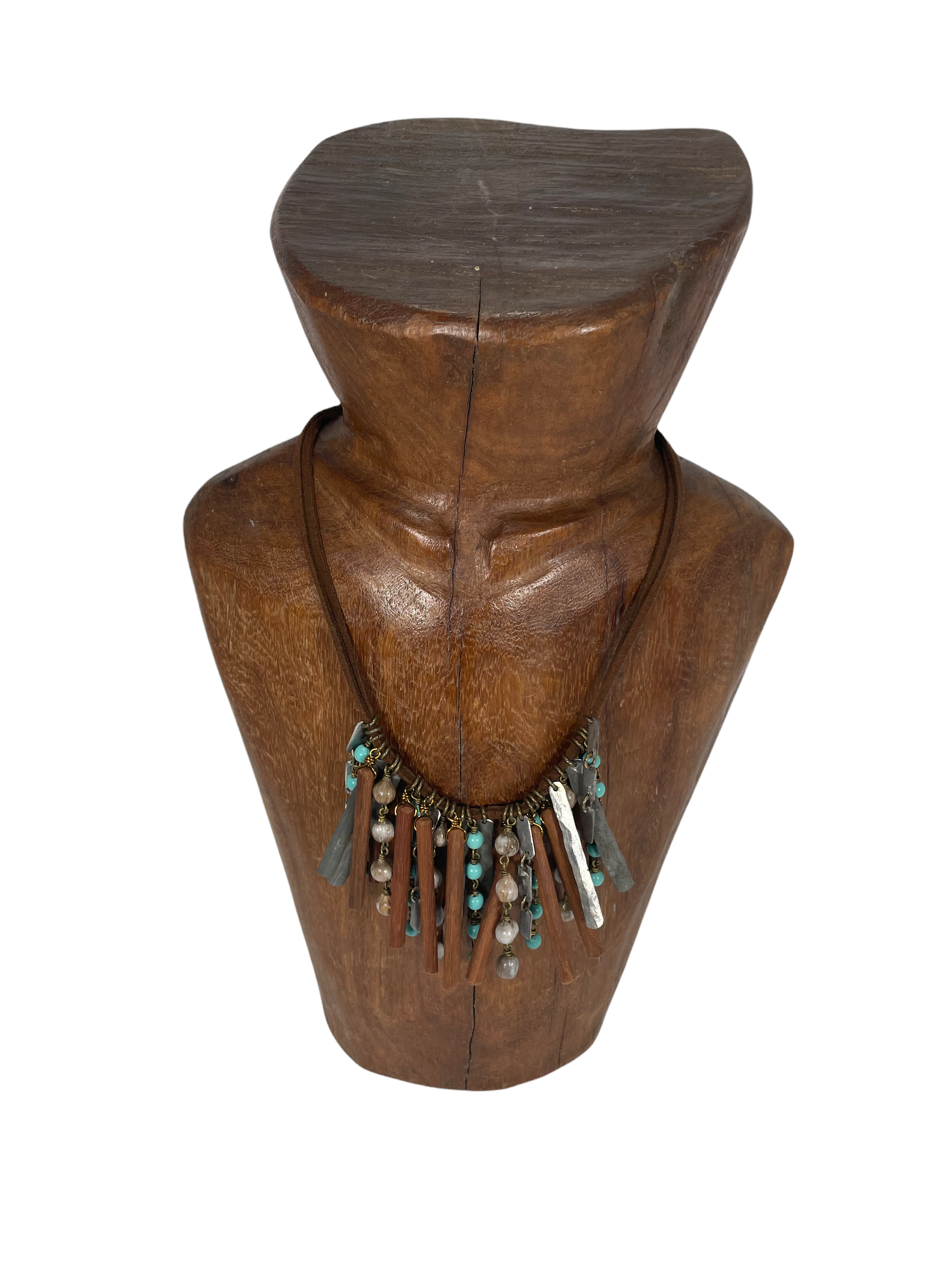 This organic necklace is made out of hammered snare wire and turquoise Ethiopian prayer beads that give thanks to many graces of the world such as animals and plants. It can be a very empowering necklace to wear!