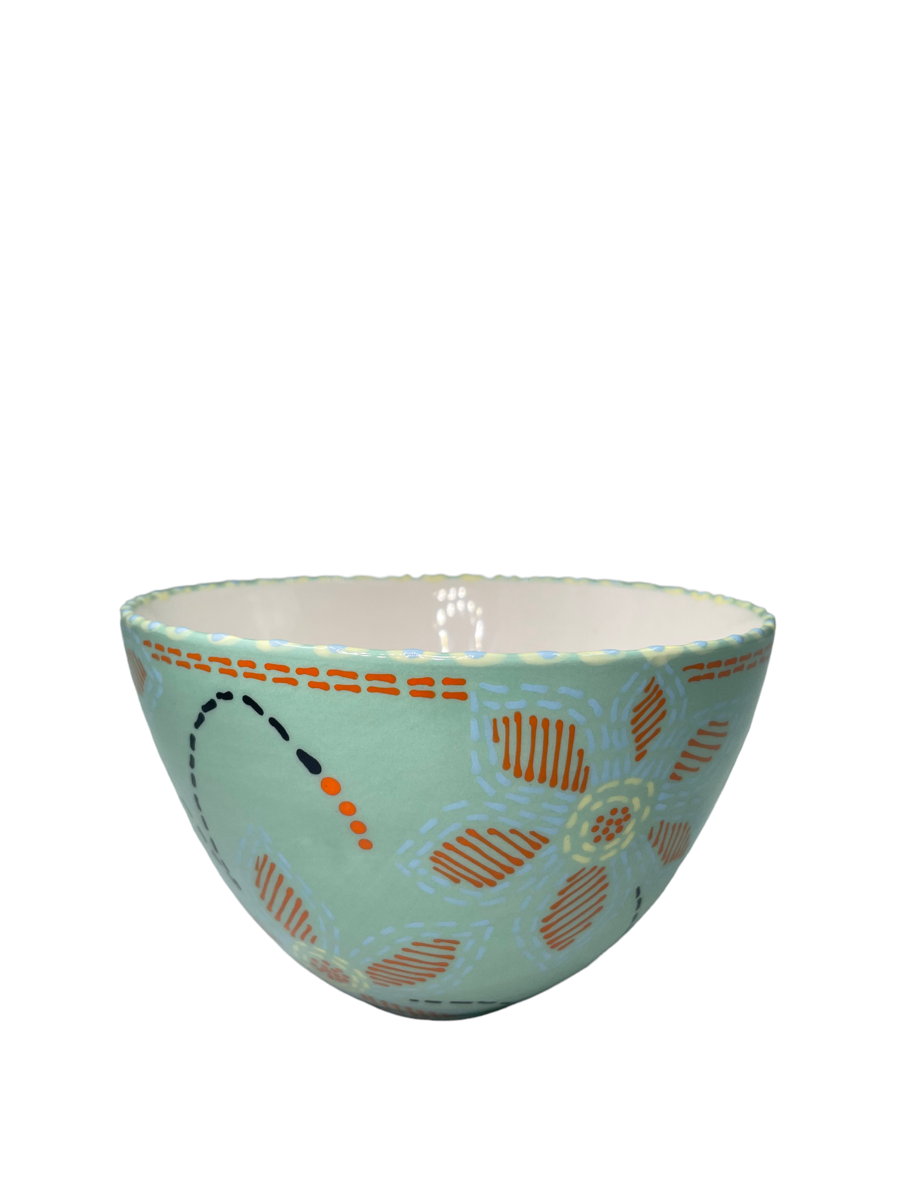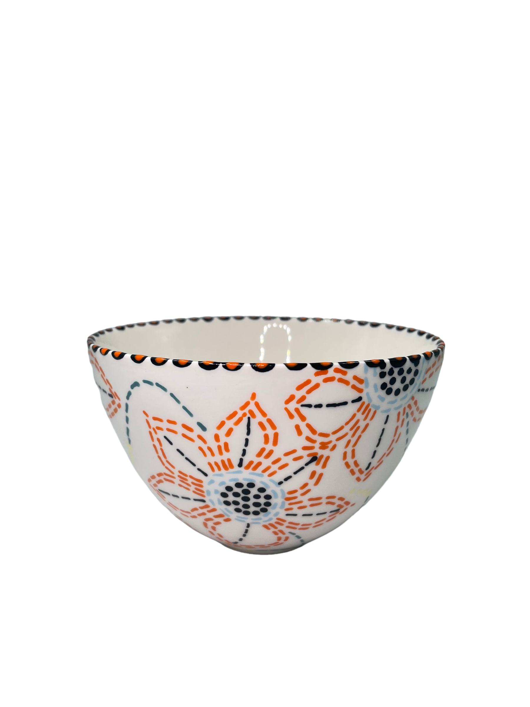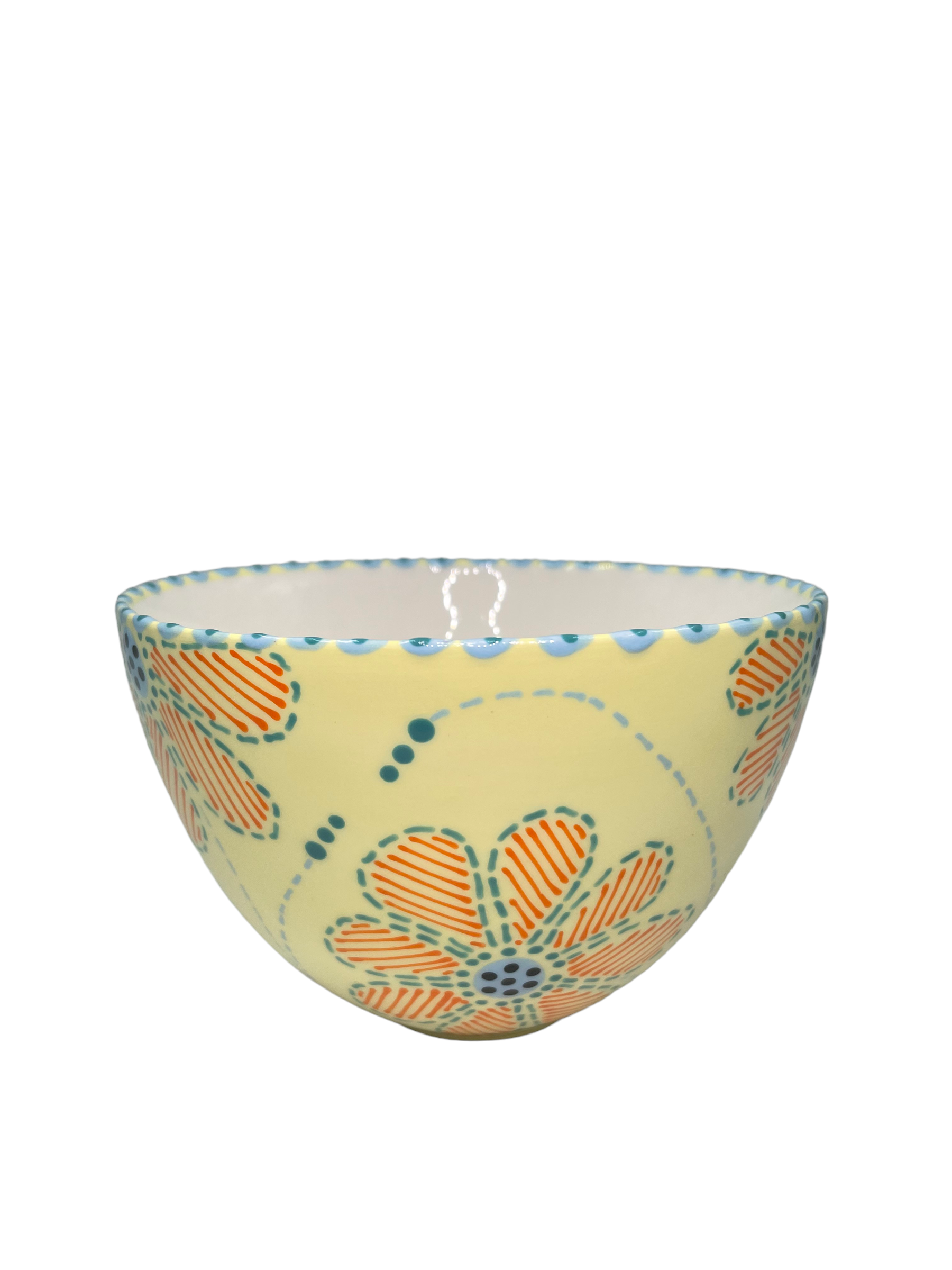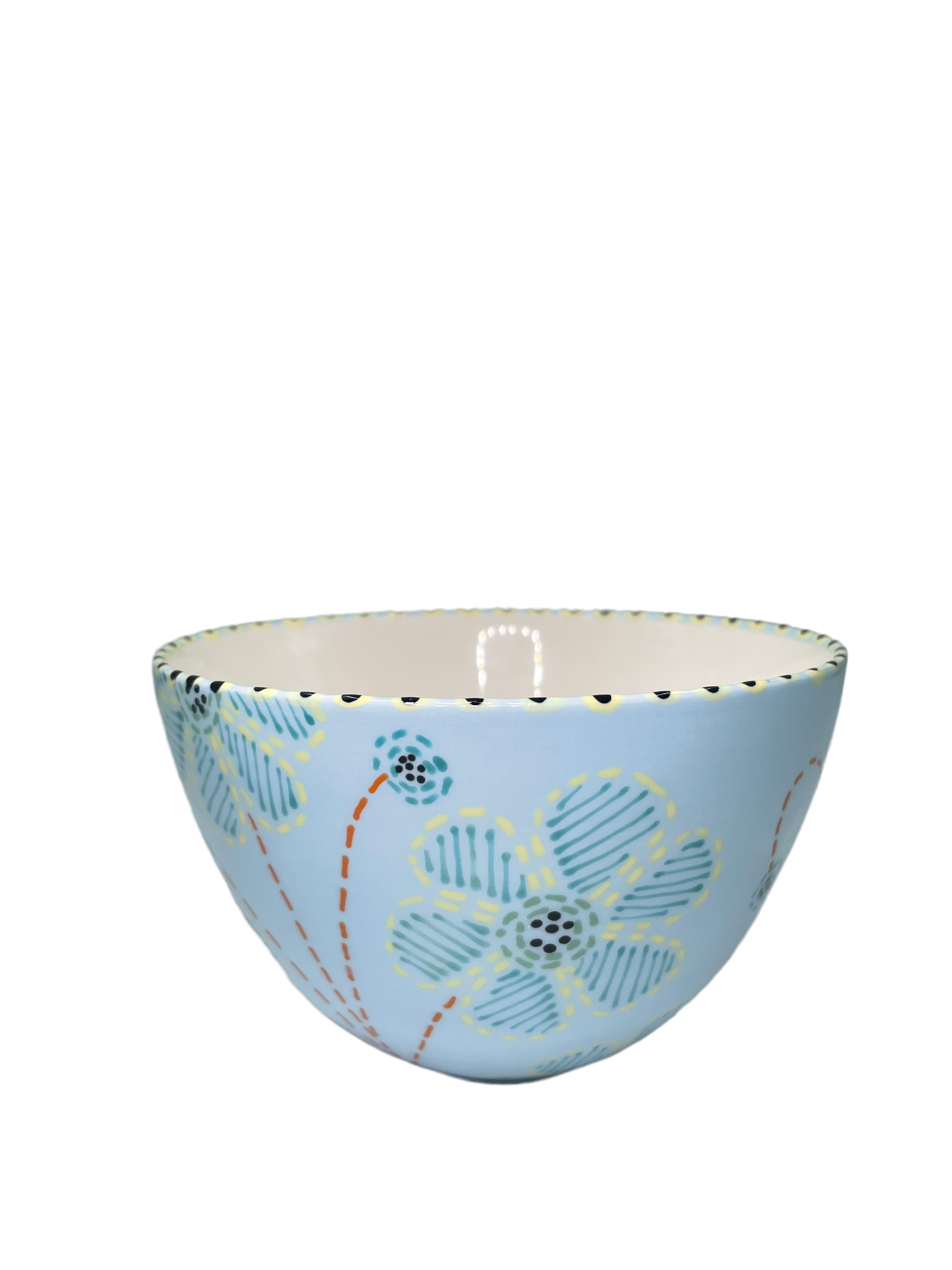 This Floral Latte Bowl is perfect for breakfast, lunch, and dinner! With a distinctive abstract African style using tactile, bead-like painting on hand-crafted ceramics, for which The Potterswork is renowned, this piece was made by a master artisan. No two works are identical. Each piece is made by a master artisan. No two works are identical. The main color option is listed and a representative photo is shown. You will receive a similar piece. As all are one of a kind the main color option best describes the piece. All separate pieces coordinate with each other beautifully and can be mixed and matched to create a garden of colors on your table. If you desire to speak with one of our associates they can always pick and choose for you a color selection that will be unique, just like you!