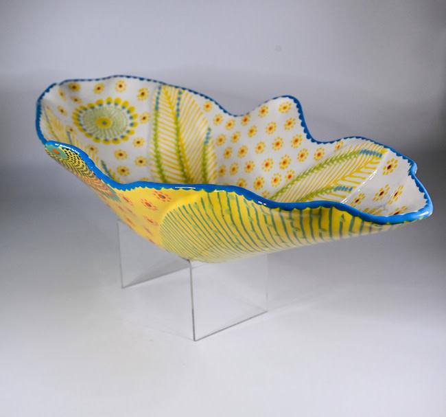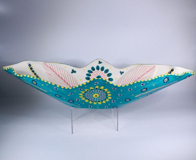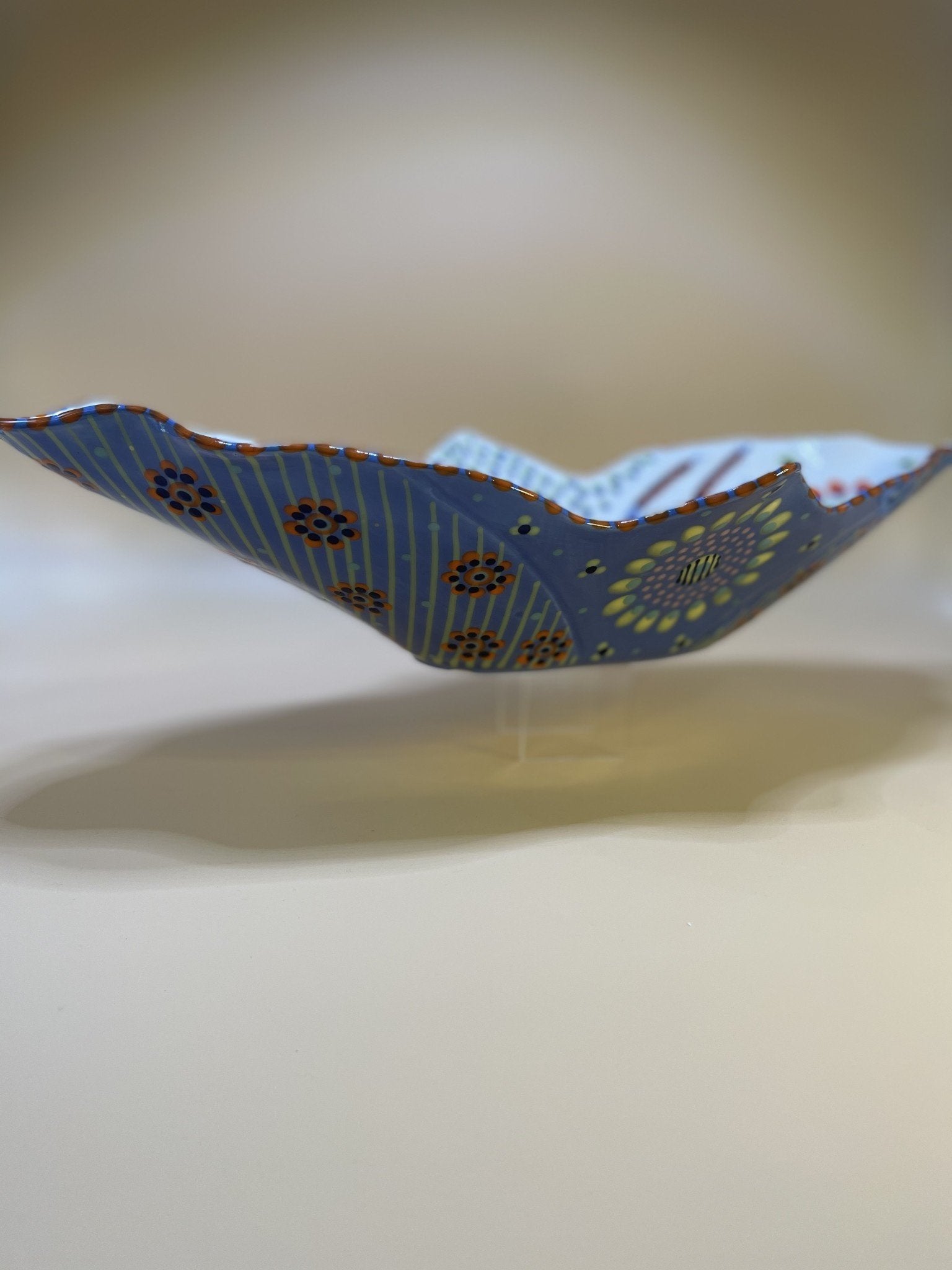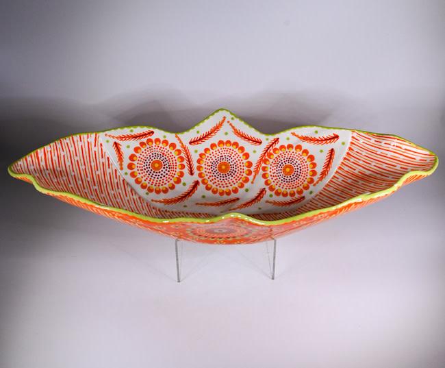 The super long Lily Boat is 20.5" long and will hold, oh, ANYTHING! We like serving fresh fruit cocktail in it to give a color splash to your table! With a distinctive abstract African style using tactile, bead-like painting on hand-crafted ceramics, for which Potterswork is renowned, this piece was made by a master artisan. No two works are identical. Each piece is made by a master artisan. No two works are identical. The main color option is listed and a representative photo is shown. You will receive a similar piece. As all are one of a kind the main color option best describes the piece. All separate pieces in the Lily range coordinate with each other beautifully and can be mixed and matched to create a garden of colors on your table. If you desire to speak with one of our associates they can always pick and choose for you a color selection that will be unique, just like you!