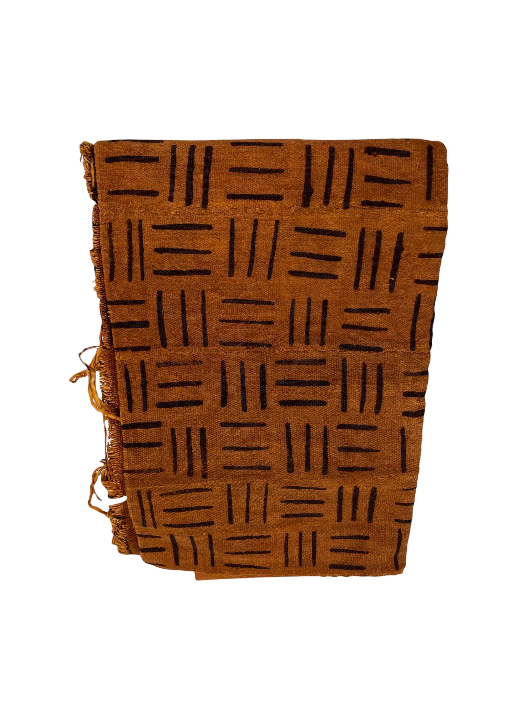 Mud cloths originate from Mali and are traditionally dyed with fermented mud and other natural sources, like leaves and vegetables. Mud cloth designs hold cultural significance and can represent events, concepts, and living things.