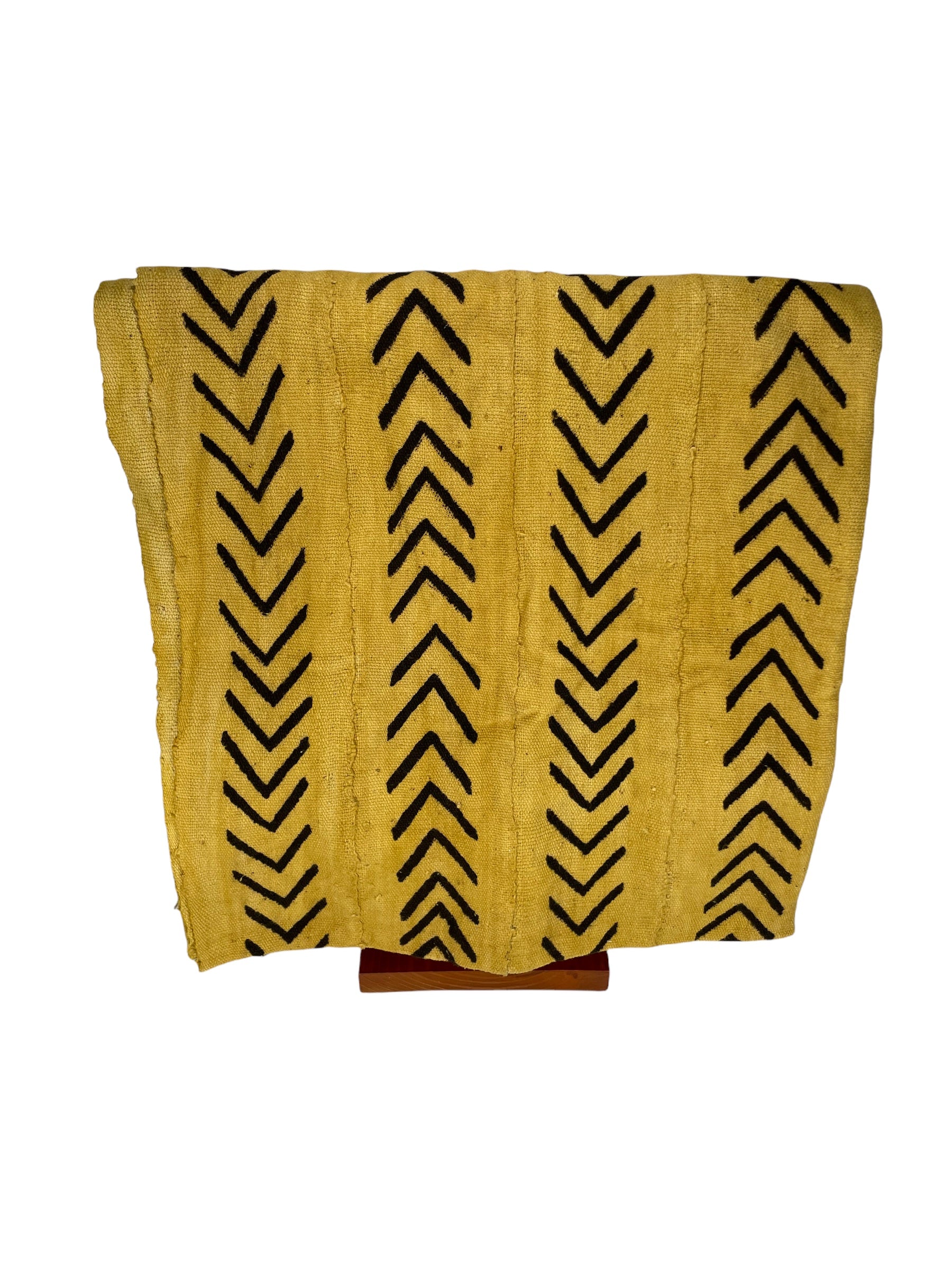 Mud cloths originate from Mali and are traditionally dyed with fermented mud and other natural sources, like leaves and vegetables. Mud cloth designs hold cultural significance and can represent events, concepts, and living things.