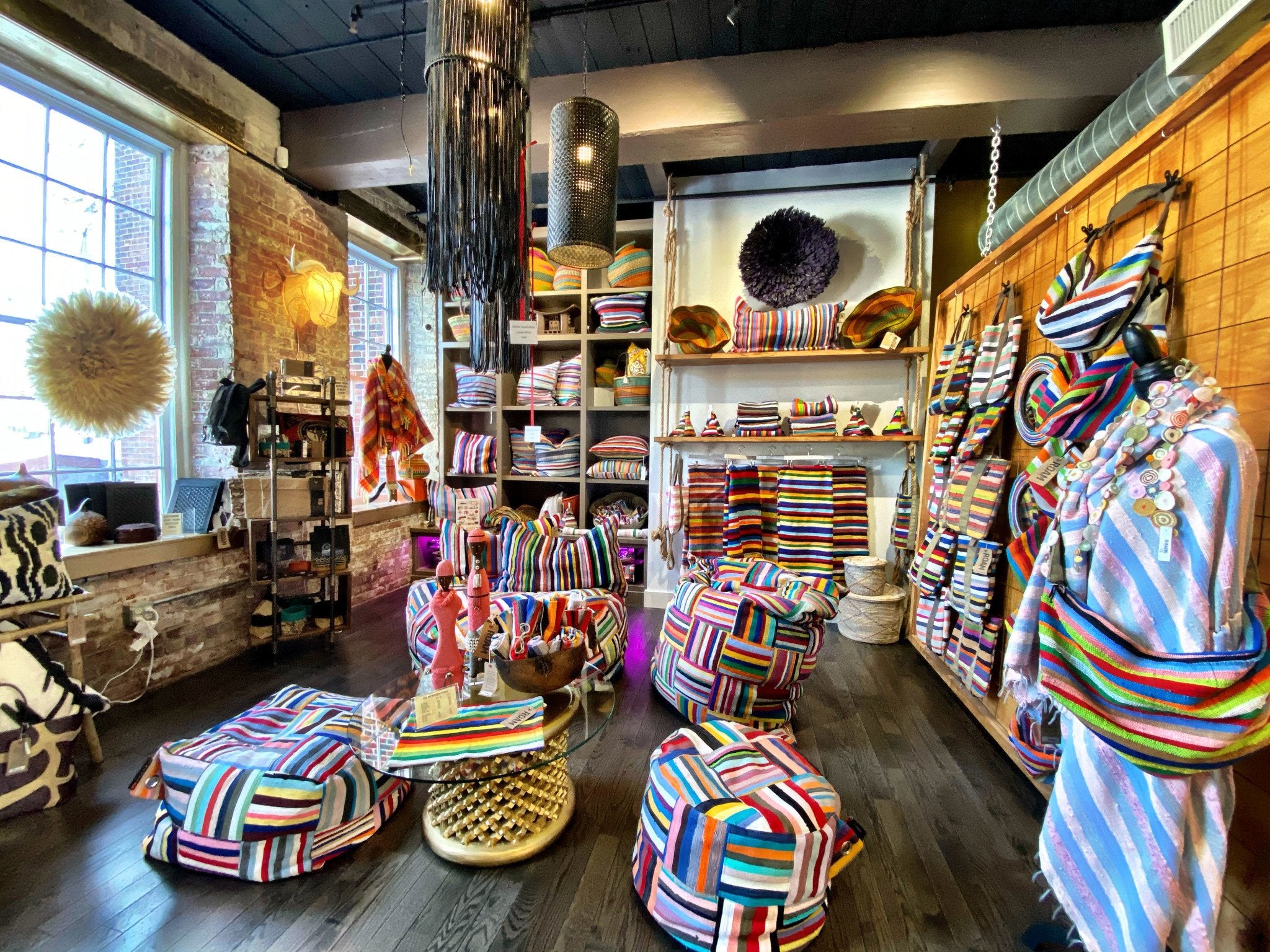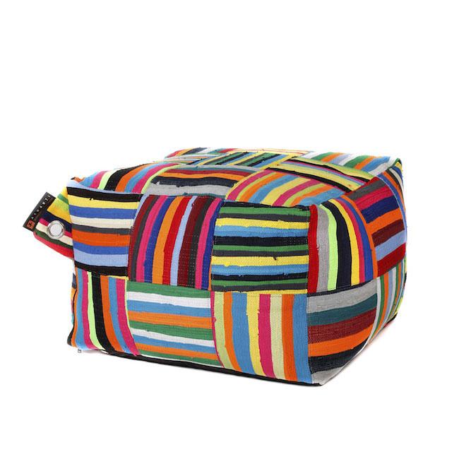 Ashanti Designs Mini Ejoro Bean Bag is the square version of the round Baby Bori Bori. It makes a colorful and soft or firm (depending on how you much fill you use!) footrest or coffee table seat. Great for adults and children! Crafted with African classical weaving techniques from recycling T-shirt material that would otherwise be discarded into landfills. Each T-shirt is hand-stripped, dyed by hand, re-woven and then crafted into this iconic, colorful fabric. Approx. Size: 24” x 24” x 16”